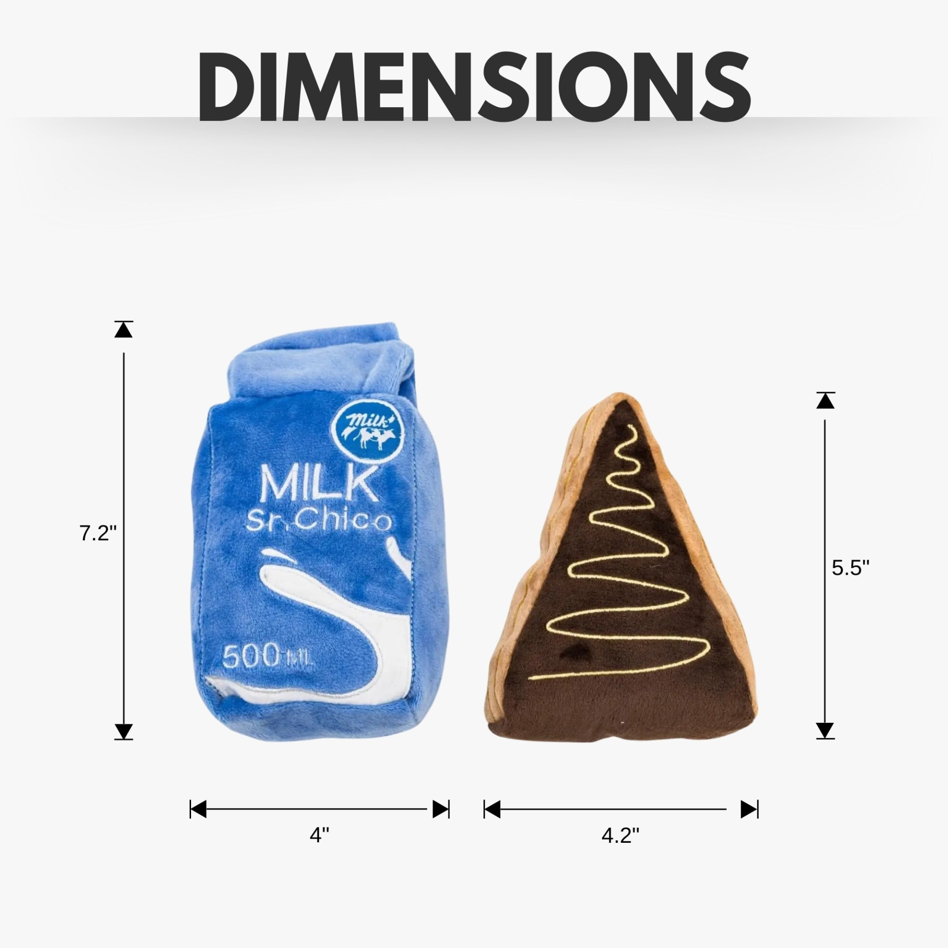 Celebrate the unbreakable bond between dogs and their owners with this adorable plush duo, inspired by the joy of sharing late-night snacks. Designed to bring fun and comfort, this charming set includes a milk carton and a slice of cake, making it the perfect playtime or cuddle companion for your pup.