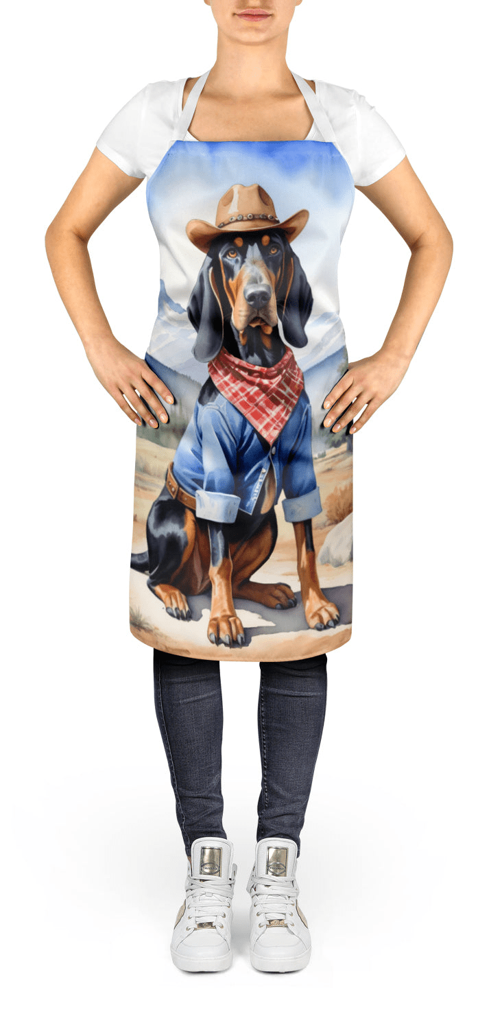 Apron featuring breed specific Black and Tan Coonhound artwork. Elevate your cooking, baking, and grilling experiences with our versatile Kitchen or BBQ Apron. This Bib Style apron isn't just limited to culinary activities - it also serves as an excellent baking apron, artist apron, server apron, gardening apron, or even a dog grooming apron. The apron showcases vibrant full-color artwork contributed by one of our talented artists, bringing a dash of style to your daily tasks. With dimensions of approximately 27"W x 30"H, it provides ample coverage to protect your clothing from spills and splashes. Our apron is meticulously crafted from 100% Ultra Spun Polyester, known for its durability and lightweight nature. The apron comes with white tie straps, ensuring a comfortable and adjustable fit for all. It's a perfect choice for kitchen apron enthusiasts, whether you are a woman or a man. Designed for easy maintenance, this apron is fully machine washable. The quick-drying polyester material actively reduces staining, keeping your apron looking fresh and new for longer. Our beautifully designed apron isn't just a functional kitchen accessory - it's a fashion statement in the culinary world!