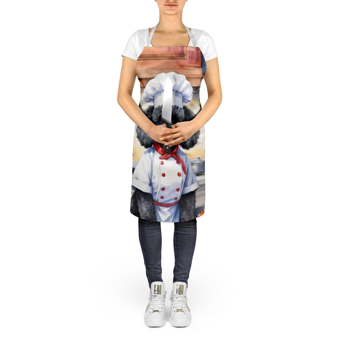 Apron featuring breed specific Poodle artwork. Elevate your cooking, baking, and grilling experiences with our versatile Kitchen or BBQ Apron. This Bib Style apron isn't just limited to culinary activities - it also serves as an excellent baking apron, artist apron, server apron, gardening apron, or even a dog grooming apron. The apron showcases vibrant full-color artwork contributed by one of our talented artists, bringing a dash of style to your daily tasks. With dimensions of approximately 27"W x 30"H, it provides ample coverage to protect your clothing from spills and splashes. Our apron is meticulously crafted from 100% Ultra Spun Polyester, known for its durability and lightweight nature. The apron comes with white tie straps, ensuring a comfortable and adjustable fit for all. It's a perfect choice for kitchen apron enthusiasts, whether you are a woman or a man. Designed for easy maintenance, this apron is fully machine washable. The quick-drying polyester material actively reduces staining, keeping your apron looking fresh and new for longer. Our beautifully designed apron isn't just a functional kitchen accessory - it's a fashion statement in the culinary world!