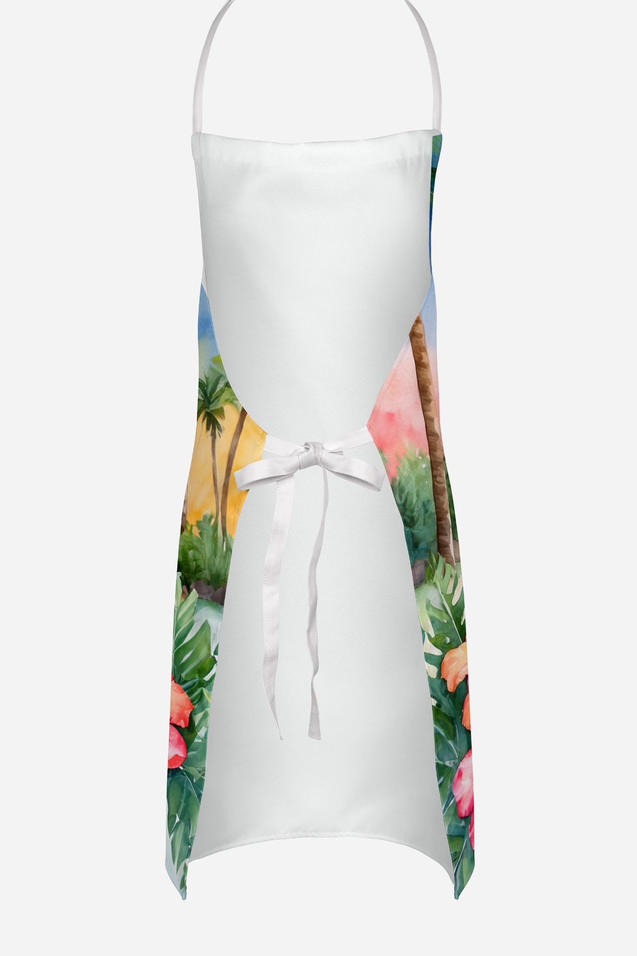 Apron featuring breed specific Borzoi Russian Wolfhound artwork. Elevate your cooking, baking, and grilling experiences with our versatile Kitchen or BBQ Apron. This Bib Style apron isn't just limited to culinary activities - it also serves as an excellent baking apron, artist apron, server apron, gardening apron, or even a dog grooming apron. The apron showcases vibrant full-color artwork contributed by one of our talented artists, bringing a dash of style to your daily tasks. With dimensions of approximately 27"W x 30"H, it provides ample coverage to protect your clothing from spills and splashes. Our apron is meticulously crafted from 100% Ultra Spun Polyester, known for its durability and lightweight nature. The apron comes with white tie straps, ensuring a comfortable and adjustable fit for all. It's a perfect choice for kitchen apron enthusiasts, whether you are a woman or a man. Designed for easy maintenance, this apron is fully machine washable. The quick-drying polyester material actively reduces staining, keeping your apron looking fresh and new for longer. Our beautifully designed apron isn't just a functional kitchen accessory - it's a fashion statement in the culinary world!