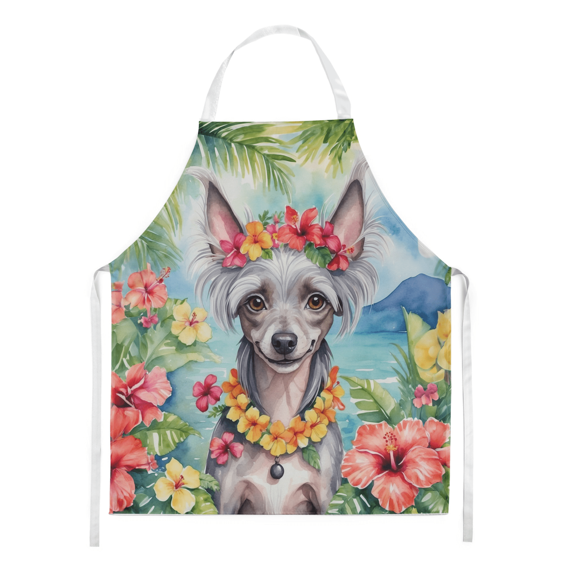 Apron featuring breed specific Chinese Crested artwork. Elevate your cooking, baking, and grilling experiences with our versatile Kitchen or BBQ Apron. This Bib Style apron isn't just limited to culinary activities - it also serves as an excellent baking apron, artist apron, server apron, gardening apron, or even a dog grooming apron. The apron showcases vibrant full-color artwork contributed by one of our talented artists, bringing a dash of style to your daily tasks. With dimensions of approximately 27"W x 30"H, it provides ample coverage to protect your clothing from spills and splashes. Our apron is meticulously crafted from 100% Ultra Spun Polyester, known for its durability and lightweight nature. The apron comes with white tie straps, ensuring a comfortable and adjustable fit for all. It's a perfect choice for kitchen apron enthusiasts, whether you are a woman or a man. Designed for easy maintenance, this apron is fully machine washable. The quick-drying polyester material actively reduces staining, keeping your apron looking fresh and new for longer. Our beautifully designed apron isn't just a functional kitchen accessory - it's a fashion statement in the culinary world!