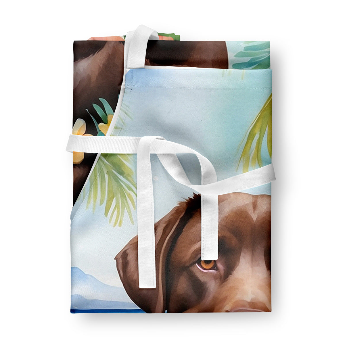 Apron featuring breed specific Labrador Retriever artwork. Elevate your cooking, baking, and grilling experiences with our versatile Kitchen or BBQ Apron. This Bib Style apron isn't just limited to culinary activities - it also serves as an excellent baking apron, artist apron, server apron, gardening apron, or even a dog grooming apron. The apron showcases vibrant full-color artwork contributed by one of our talented artists, bringing a dash of style to your daily tasks. With dimensions of approximately 27"W x 30"H, it provides ample coverage to protect your clothing from spills and splashes. Our apron is meticulously crafted from 100% Ultra Spun Polyester, known for its durability and lightweight nature. The apron comes with white tie straps, ensuring a comfortable and adjustable fit for all. It's a perfect choice for kitchen apron enthusiasts, whether you are a woman or a man. Designed for easy maintenance, this apron is fully machine washable. The quick-drying polyester material actively reduces staining, keeping your apron looking fresh and new for longer. Our beautifully designed apron isn't just a functional kitchen accessory - it's a fashion statement in the culinary world!