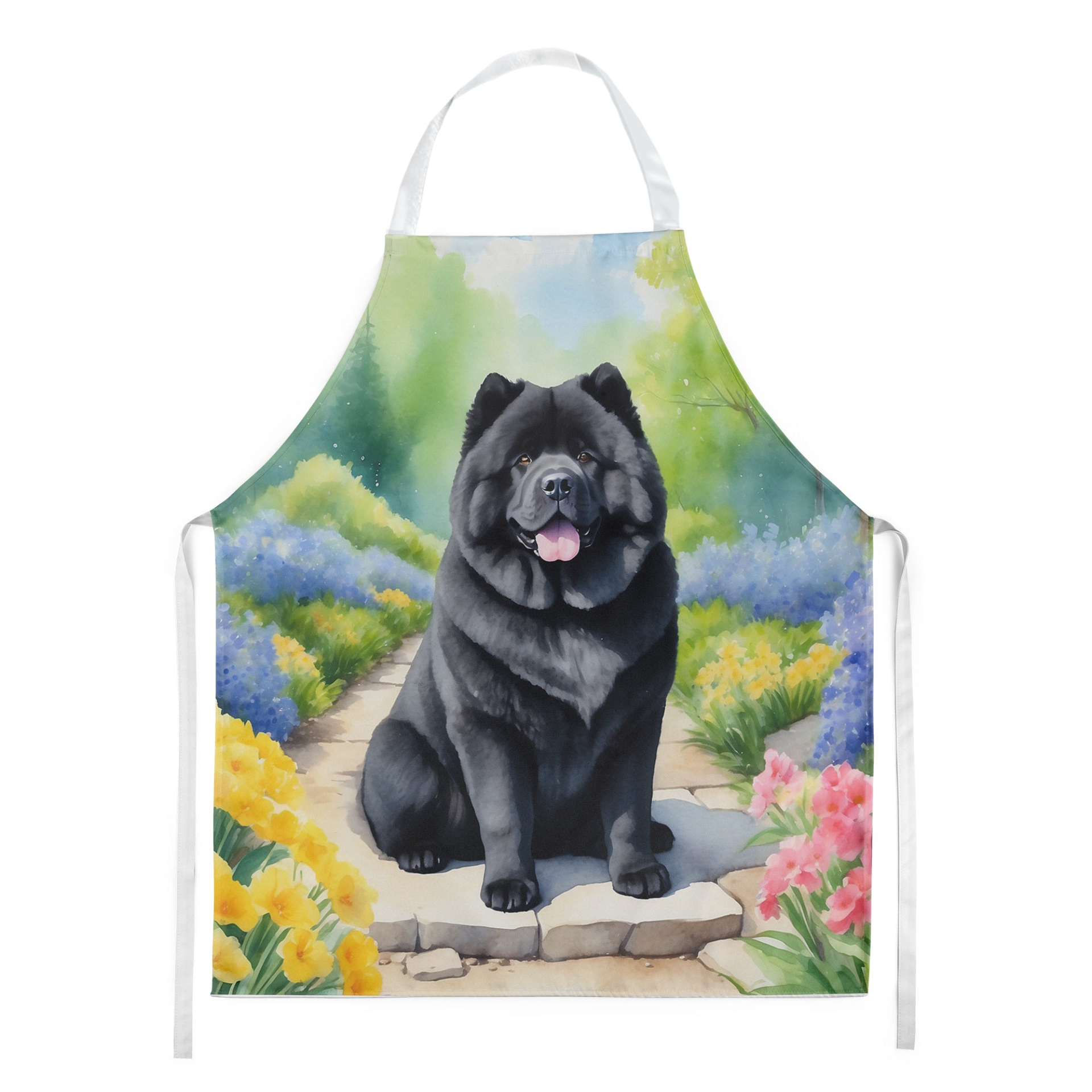 Apron featuring breed specific Chow Chow artwork. Elevate your cooking, baking, and grilling experiences with our versatile Kitchen or BBQ Apron. This Bib Style apron isn't just limited to culinary activities - it also serves as an excellent baking apron, artist apron, server apron, gardening apron, or even a dog grooming apron. The apron showcases vibrant full-color artwork contributed by one of our talented artists, bringing a dash of style to your daily tasks. With dimensions of approximately 27"W x 30"H, it provides ample coverage to protect your clothing from spills and splashes. Our apron is meticulously crafted from 100% Ultra Spun Polyester, known for its durability and lightweight nature. The apron comes with white tie straps, ensuring a comfortable and adjustable fit for all. It's a perfect choice for kitchen apron enthusiasts, whether you are a woman or a man. Designed for easy maintenance, this apron is fully machine washable. The quick-drying polyester material actively reduces staining, keeping your apron looking fresh and new for longer. Our beautifully designed apron isn't just a functional kitchen accessory - it's a fashion statement in the culinary world!