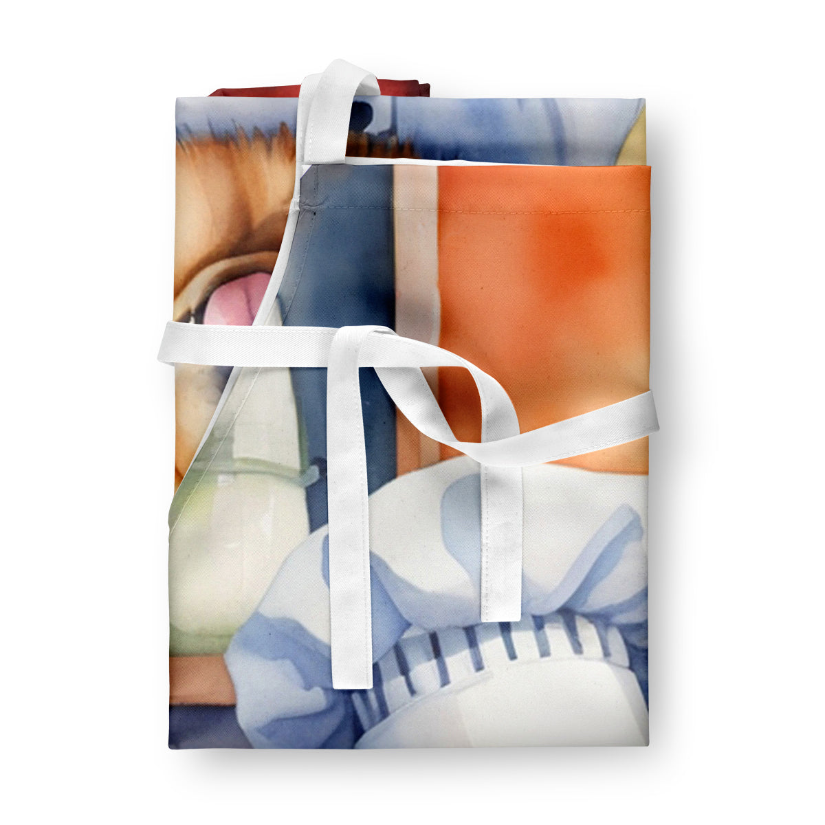 Apron featuring breed specific Chow Chow artwork. Elevate your cooking, baking, and grilling experiences with our versatile Kitchen or BBQ Apron. This Bib Style apron isn't just limited to culinary activities - it also serves as an excellent baking apron, artist apron, server apron, gardening apron, or even a dog grooming apron. The apron showcases vibrant full-color artwork contributed by one of our talented artists, bringing a dash of style to your daily tasks. With dimensions of approximately 27"W x 30"H, it provides ample coverage to protect your clothing from spills and splashes. Our apron is meticulously crafted from 100% Ultra Spun Polyester, known for its durability and lightweight nature. The apron comes with white tie straps, ensuring a comfortable and adjustable fit for all. It's a perfect choice for kitchen apron enthusiasts, whether you are a woman or a man. Designed for easy maintenance, this apron is fully machine washable. The quick-drying polyester material actively reduces staining, keeping your apron looking fresh and new for longer. Our beautifully designed apron isn't just a functional kitchen accessory - it's a fashion statement in the culinary world!