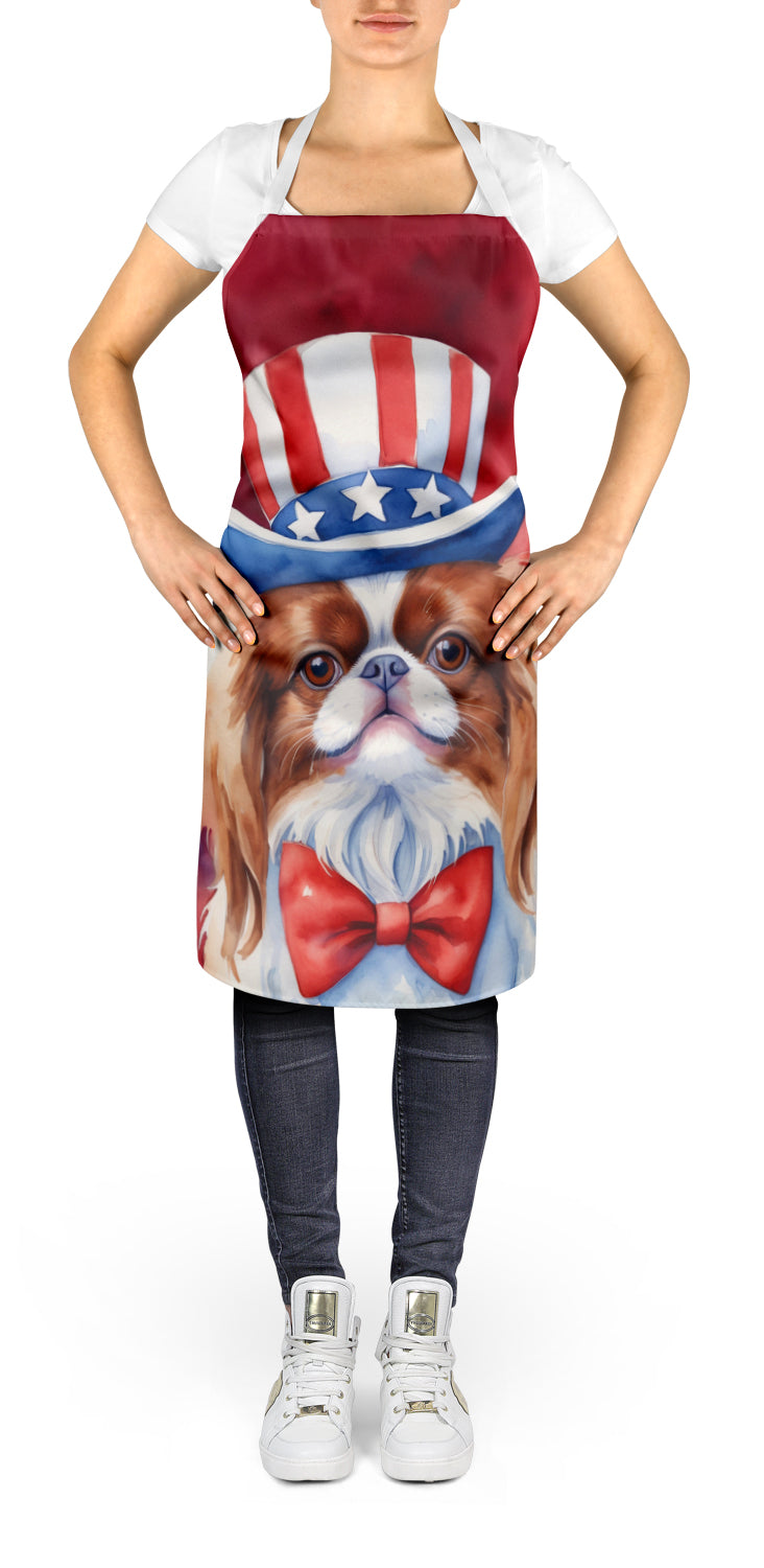 Apron featuring breed specific Japanese Chin artwork. Elevate your cooking, baking, and grilling experiences with our versatile Kitchen or BBQ Apron. This Bib Style apron isn't just limited to culinary activities - it also serves as an excellent baking apron, artist apron, server apron, gardening apron, or even a dog grooming apron. The apron showcases vibrant full-color artwork contributed by one of our talented artists, bringing a dash of style to your daily tasks. With dimensions of approximately 27"W x 30"H, it provides ample coverage to protect your clothing from spills and splashes. Our apron is meticulously crafted from 100% Ultra Spun Polyester, known for its durability and lightweight nature. The apron comes with white tie straps, ensuring a comfortable and adjustable fit for all. It's a perfect choice for kitchen apron enthusiasts, whether you are a woman or a man. Designed for easy maintenance, this apron is fully machine washable. The quick-drying polyester material actively reduces staining, keeping your apron looking fresh and new for longer. Our beautifully designed apron isn't just a functional kitchen accessory - it's a fashion statement in the culinary world!