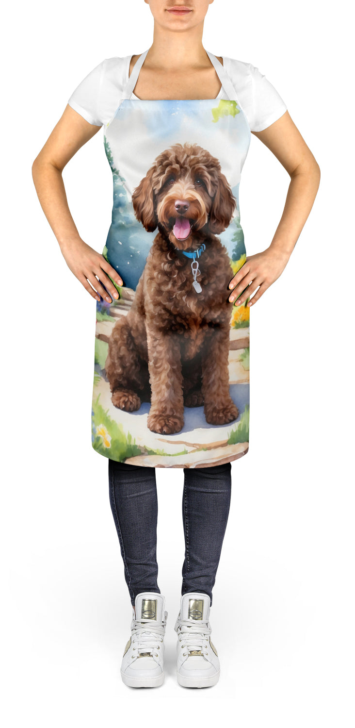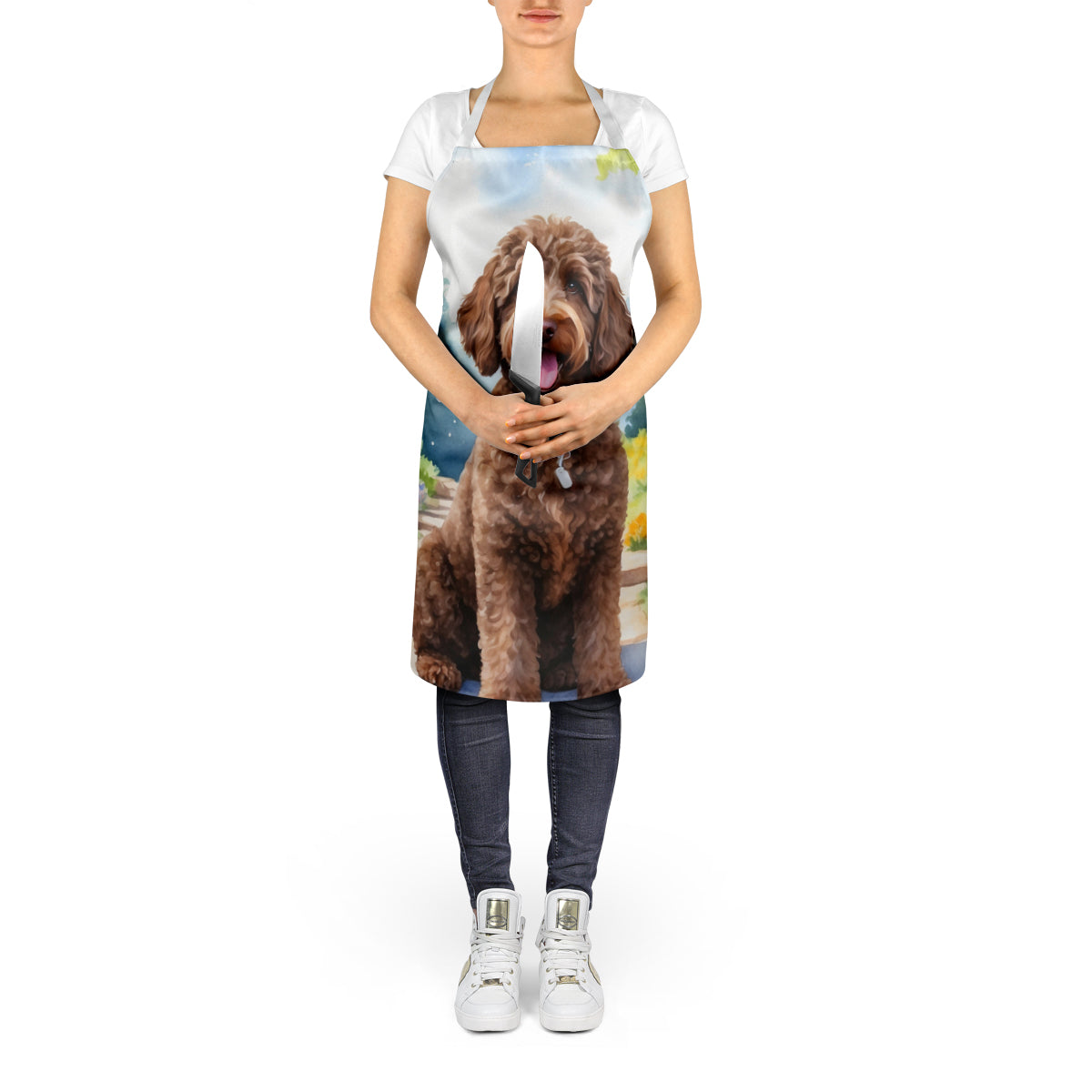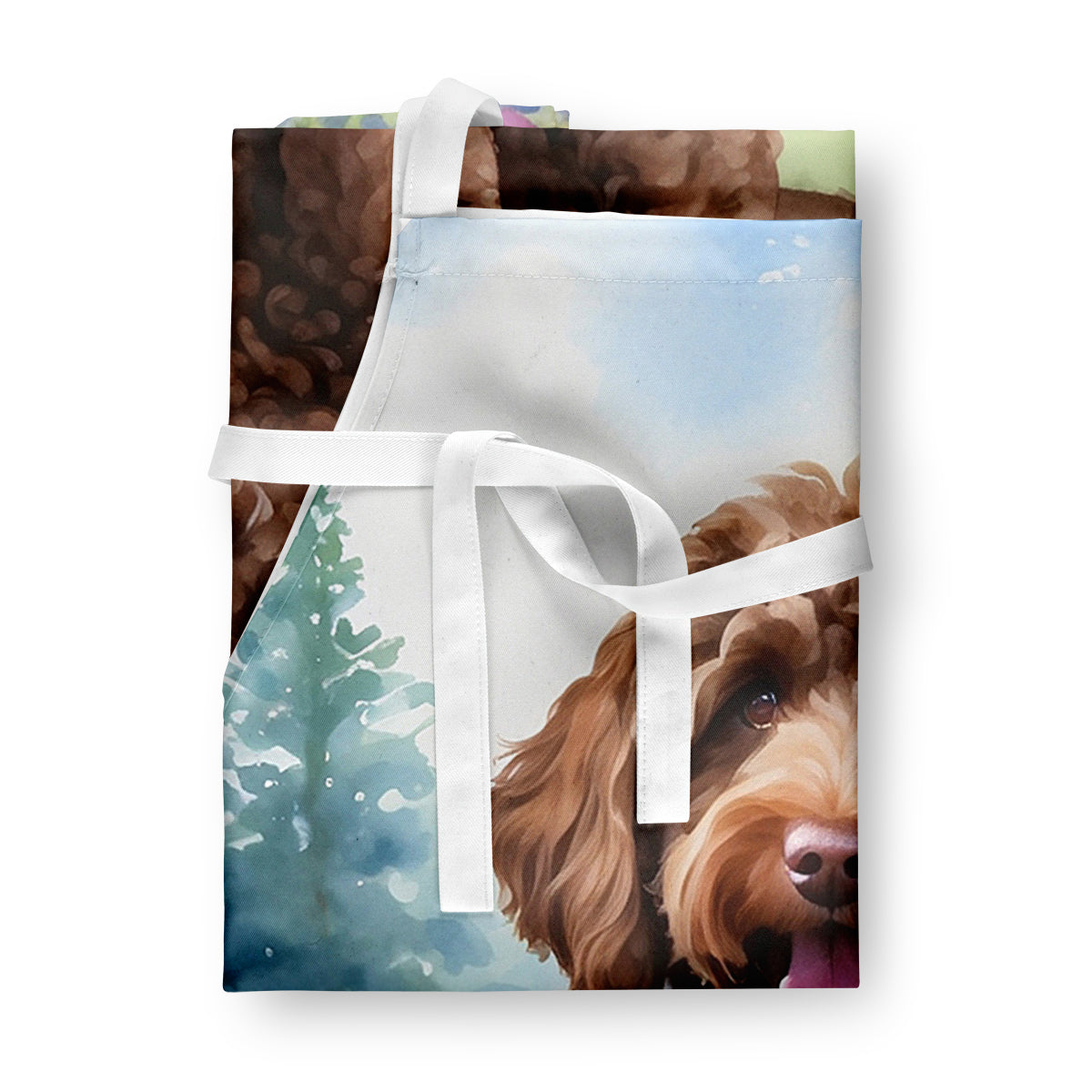 Apron featuring breed specific Labradoodle artwork. Elevate your cooking, baking, and grilling experiences with our versatile Kitchen or BBQ Apron. This Bib Style apron isn't just limited to culinary activities - it also serves as an excellent baking apron, artist apron, server apron, gardening apron, or even a dog grooming apron. The apron showcases vibrant full-color artwork contributed by one of our talented artists, bringing a dash of style to your daily tasks. With dimensions of approximately 27"W x 30"H, it provides ample coverage to protect your clothing from spills and splashes. Our apron is meticulously crafted from 100% Ultra Spun Polyester, known for its durability and lightweight nature. The apron comes with white tie straps, ensuring a comfortable and adjustable fit for all. It's a perfect choice for kitchen apron enthusiasts, whether you are a woman or a man. Designed for easy maintenance, this apron is fully machine washable. The quick-drying polyester material actively reduces staining, keeping your apron looking fresh and new for longer. Our beautifully designed apron isn't just a functional kitchen accessory - it's a fashion statement in the culinary world!