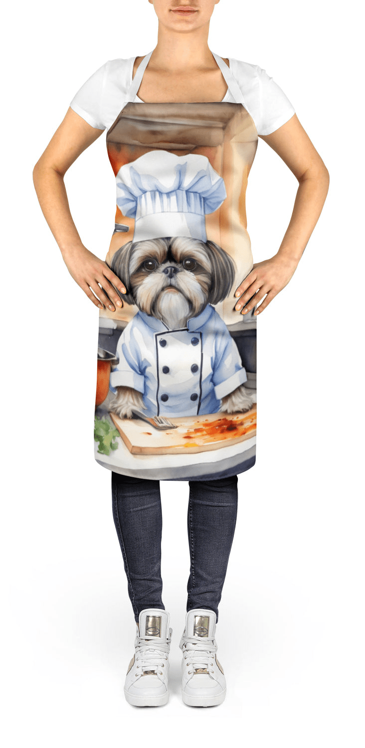 Apron featuring breed specific Shih Tzu artwork. Elevate your cooking, baking, and grilling experiences with our versatile Kitchen or BBQ Apron. This Bib Style apron isn't just limited to culinary activities - it also serves as an excellent baking apron, artist apron, server apron, gardening apron, or even a dog grooming apron. The apron showcases vibrant full-color artwork contributed by one of our talented artists, bringing a dash of style to your daily tasks. With dimensions of approximately 27"W x 30"H, it provides ample coverage to protect your clothing from spills and splashes. Our apron is meticulously crafted from 100% Ultra Spun Polyester, known for its durability and lightweight nature. The apron comes with white tie straps, ensuring a comfortable and adjustable fit for all. It's a perfect choice for kitchen apron enthusiasts, whether you are a woman or a man. Designed for easy maintenance, this apron is fully machine washable. The quick-drying polyester material actively reduces staining, keeping your apron looking fresh and new for longer. Our beautifully designed apron isn't just a functional kitchen accessory - it's a fashion statement in the culinary world!