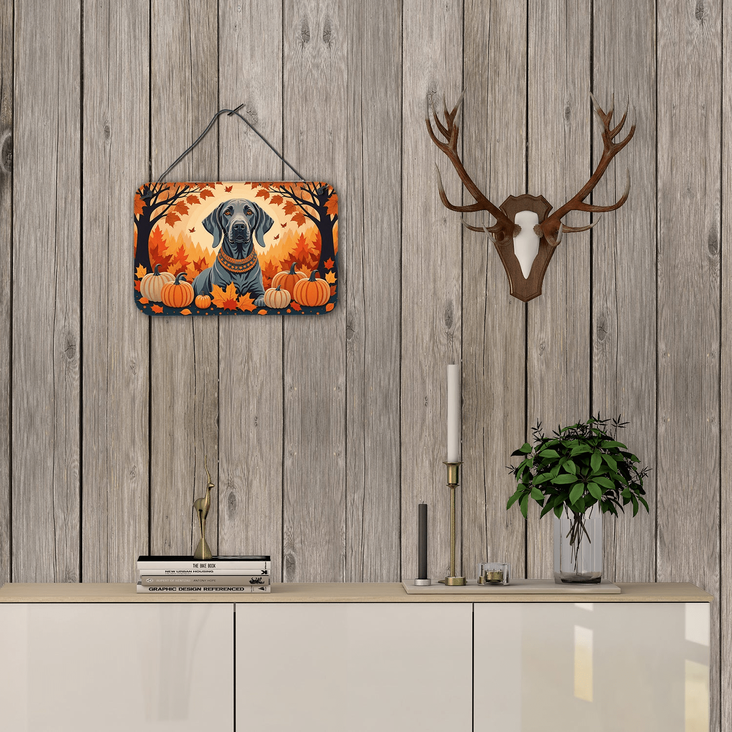 Add a splash of color and artistic flair to any indoor or outdoor space with our aluminum artwork prints. The Weimaraner and autumn palette create a luxurious vibe that’s at home on a kitchen wall, entryway, patio, or front door. Durable and weather-ready, these prints are designed to be as practical as they are beautiful, making everyday spaces feel more welcoming and refined. Your space will exude warmth, personality, and a touch of canine-inspired sophistication.