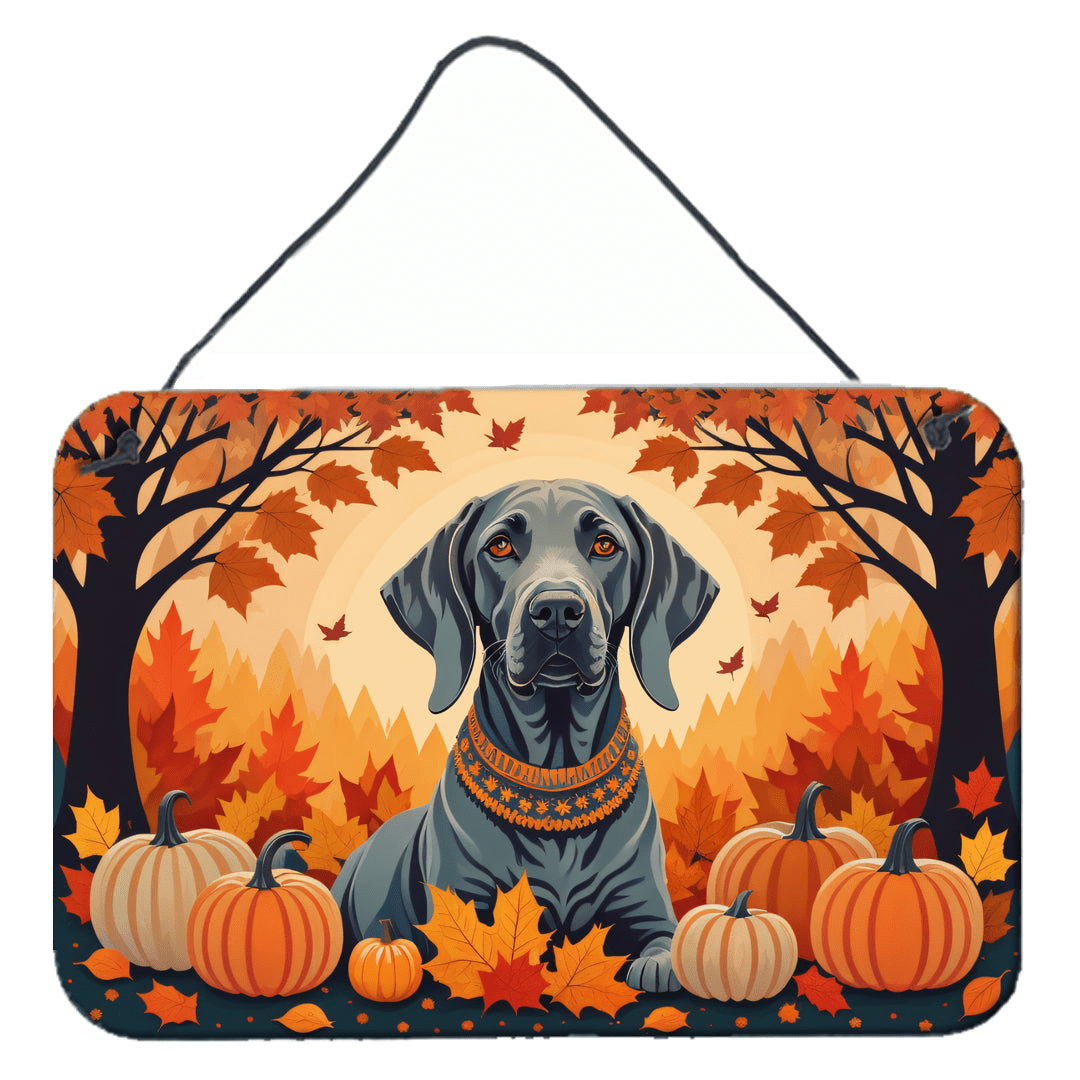 Weimaraner Fall Aluminum Artwork Prints – Wall or Door Hanging (8x12 inches)