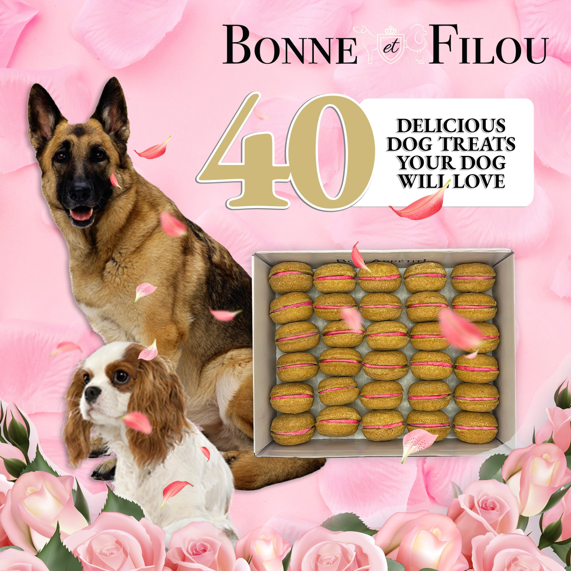 Celebrate all month long with this luxurious gift box filled to the brim with delicious French Dog Macarons!  Perfect for the eco-friendly, cost-conscious pet lovers who want to indulge their dog(s) like Royalty, or as the pup-perfect party favor at your next big event!
