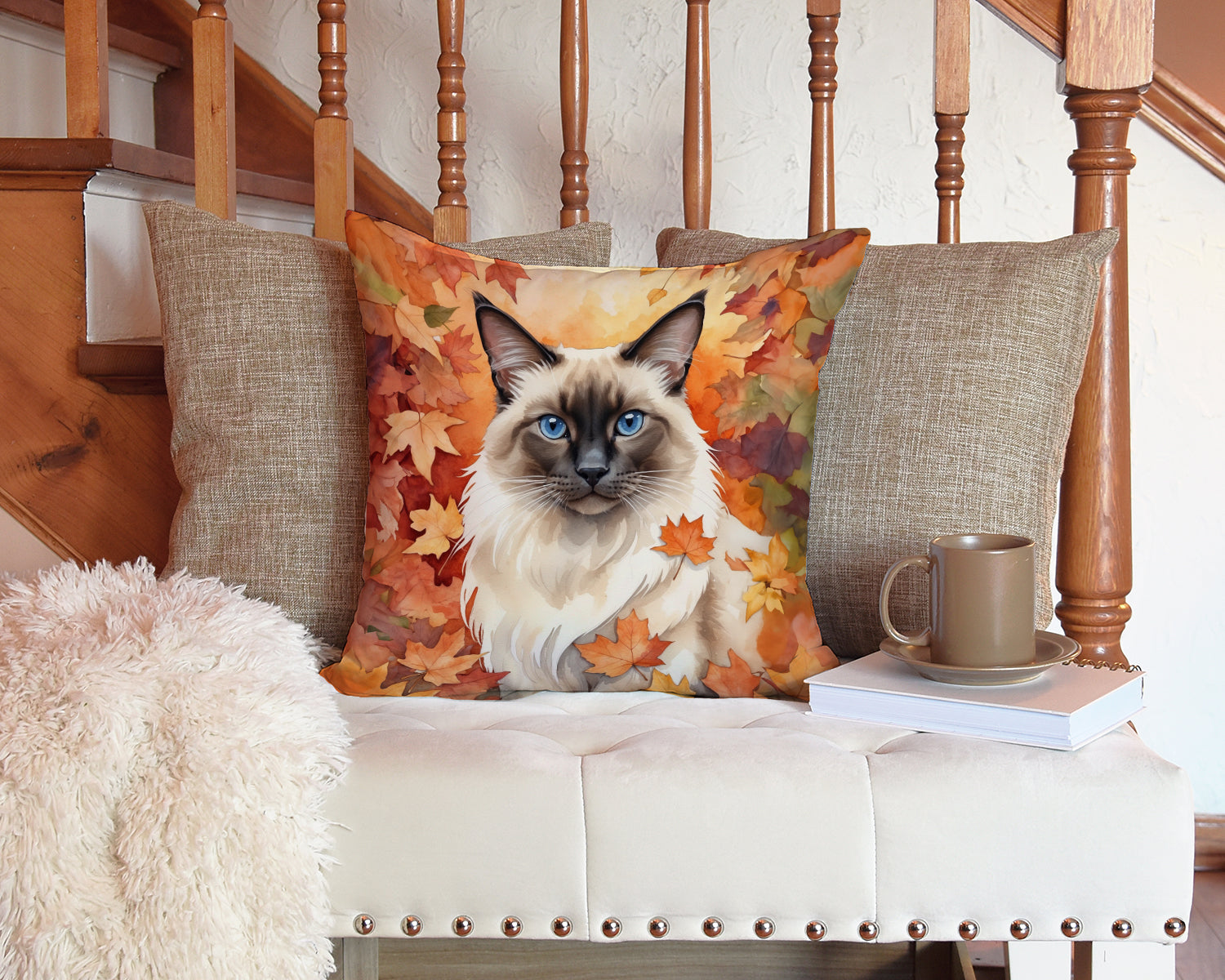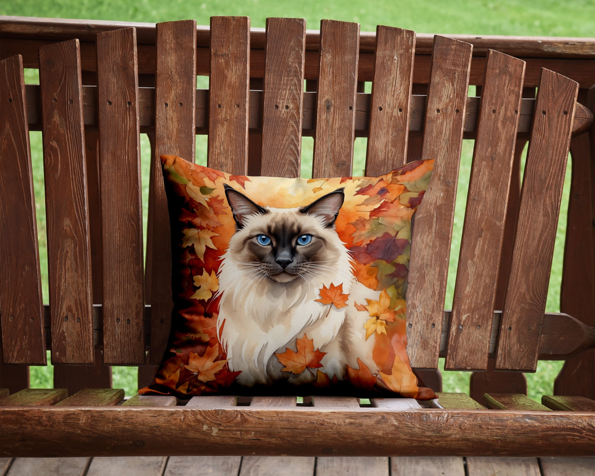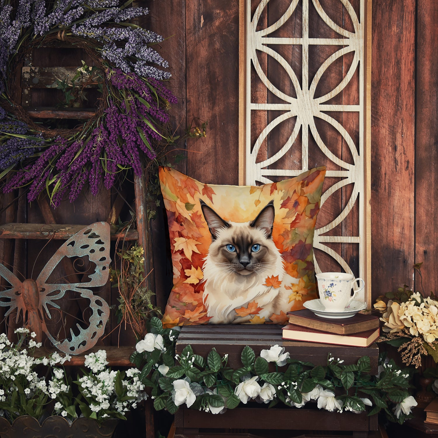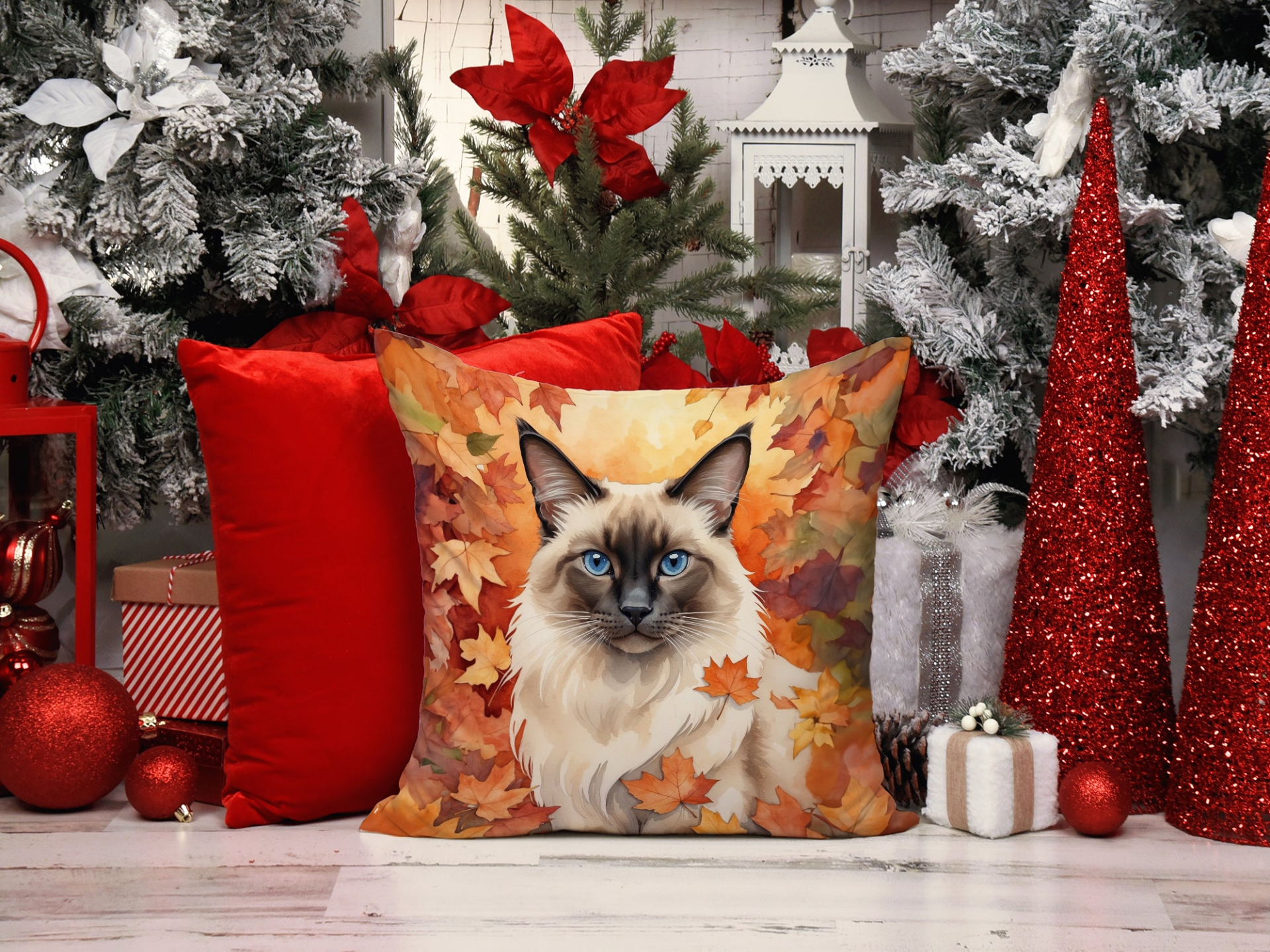 Throw Pillow featuring breed specific Balinese Cat artwork. Celebrate Halloween with this Halloween Pillow. Add a touch of vibrancy and comfort to your outdoor seating with Caroline's Treasures Fabric Decorative Pillow. Measuring approximately 14 inches by 14 inches, this outdoor pillow is crafted to elevate the appeal of your patio furniture, infusing it with vivid color and artistic flair. The pillow includes a 100% Polyester Fabric sham filled with a quality pillow form to provide superior comfort. Innovatively made from our brand new material, specifically woven for its water resistance, this pillow is designed for durability. The soft canvas fabric offers versatility in use, fit for your indoor couch or your outdoor patio, porch, or veranda. The fabric is dyed with colorfast dyes built for resilience against weather conditions, ensuring the pillow retains its beauty over time. Constructed by sewing three fabric pieces to create a sham, the polyester insert is then nestled inside to form the pillow, resulting in an overstuffed pillow that maintains its shape. Both the sham and the pillow insert are proudly made in the United States. As the pillows are handcrafted, there may be minor variations in size, further enhancing their unique charm. Experience comfort in style with Caroline's Treasures Fabric Decorative Pillow.