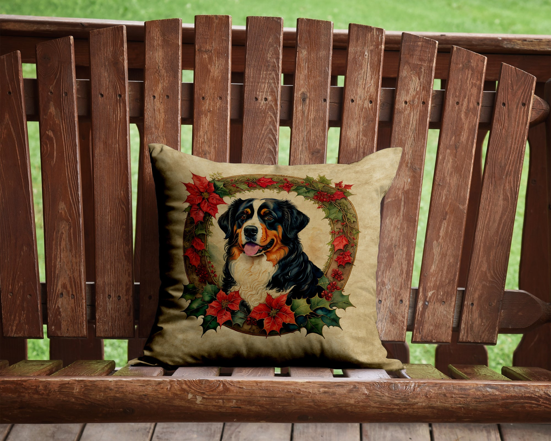 Throw Pillow featuring breed specific Bernese Mountain Dog artwork. Celebrate Christmas with this Christmas Pillow. Add a touch of vibrancy and comfort to your outdoor seating with Caroline's Treasures Fabric Decorative Pillow. Measuring approximately 14 inches by 14 inches, this outdoor pillow is crafted to elevate the appeal of your patio furniture, infusing it with vivid color and artistic flair. The pillow includes a 100% Polyester Fabric sham filled with a quality pillow form to provide superior comfort. Innovatively made from our brand new material, specifically woven for its water resistance, this pillow is designed for durability. The soft canvas fabric offers versatility in use, fit for your indoor couch or your outdoor patio, porch, or veranda. The fabric is dyed with colorfast dyes built for resilience against weather conditions, ensuring the pillow retains its beauty over time. Constructed by sewing three fabric pieces to create a sham, the polyester insert is then nestled inside to form the pillow, resulting in an overstuffed pillow that maintains its shape. Both the sham and the pillow insert are proudly made in the United States. As the pillows are handcrafted, there may be minor variations in size, further enhancing their unique charm. Experience comfort in style with Caroline's Treasures Fabric Decorative Pillow.