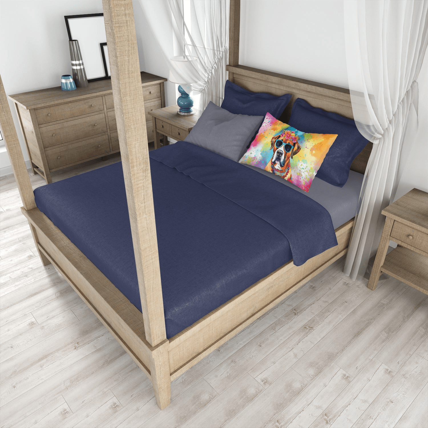 Standard Pillowcase featuring breed specific Boxer artwork. Experience an upgrade in your sleeping comfort with our Fabric Standard Pillowcase, designed to balance style, comfort, and practicality. Showcasing vibrant artwork on the front and a standard white on the back, this pillowcase is more than a functional item—it's an expression of your personal style. Crafted from premium moisture-wicking material, our pillowcase ensures a pleasant sleeping experience. The breathable performance fabric allows for excellent air circulation, keeping you cool and comfortable throughout the night while also demonstrating exceptional quality. This pillowcase, measuring 30 x 20.5 inches with a slender 0.15 inch thickness, and weighing only 0.25 lbs, fits a standard pillow perfectly. Maintaining our pillowcase is hassle-free. It requires no ironing—simply wash in cold water and dry at medium heat. Bring art and luxury into your bedroom with our Fabric Standard Pillowcase. Its unique design and top-tier fabric contribute to a relaxing and rejuvenating sleep experience. Brighten your bedroom decor while enhancing your sleep with our high-performance pillowcase.