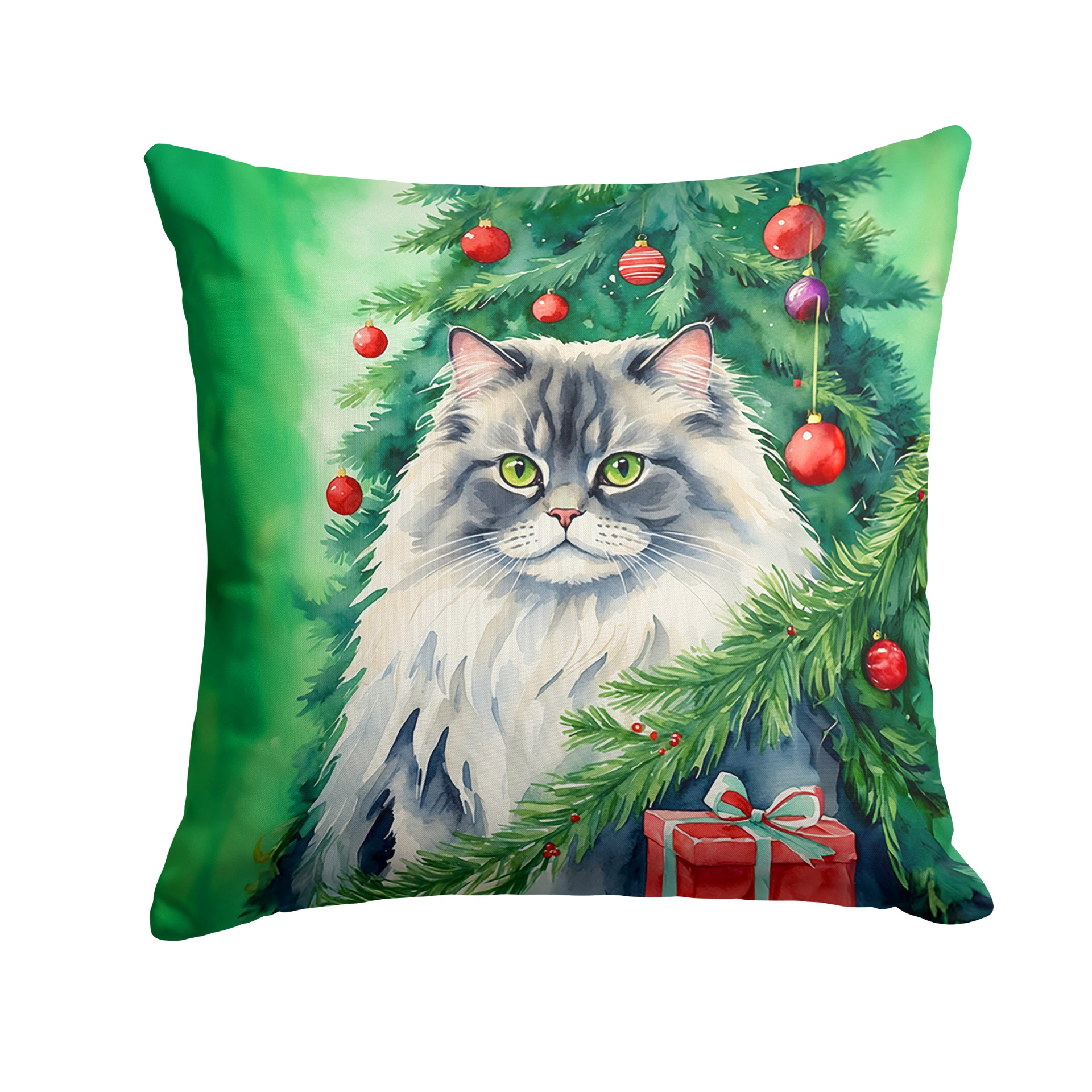 Throw Pillow featuring breed specific British Longhair artwork. Celebrate Christmas with this Christmas Pillow. Revitalize your outdoor or indoor living space with Caroline's Treasures 18x18 Fabric Decorative Pillow. With a generously sized dimension of approximately 18 inches by 18 inches, this pillow makes a comfortable and aesthetic addition to any seating area. Made from a unique, water-resistant material developed by Caroline's Treasures, the pillow sham is 100% polyester fabric that's durable and ready to weather any condition. Its vibrant, full-color artwork will not fade over time as it is dyed with color-fast dyes. Whether you place it on your patio furniture, porch, veranda, or indoor couch, its soft canvas fabric ensures a cozy experience. The pillow is handcrafted in the United States, featuring a sham created from three pieces of fabric and a polyester insert for enduring shape and overstuffed comfort. Despite being robustly built to endure the outdoors, it is as soft and snug as your favorite indoor cushions. Please note, as all our pillows are handmade, sizes may vary slightly, adding to the charm of this unique decorative item.