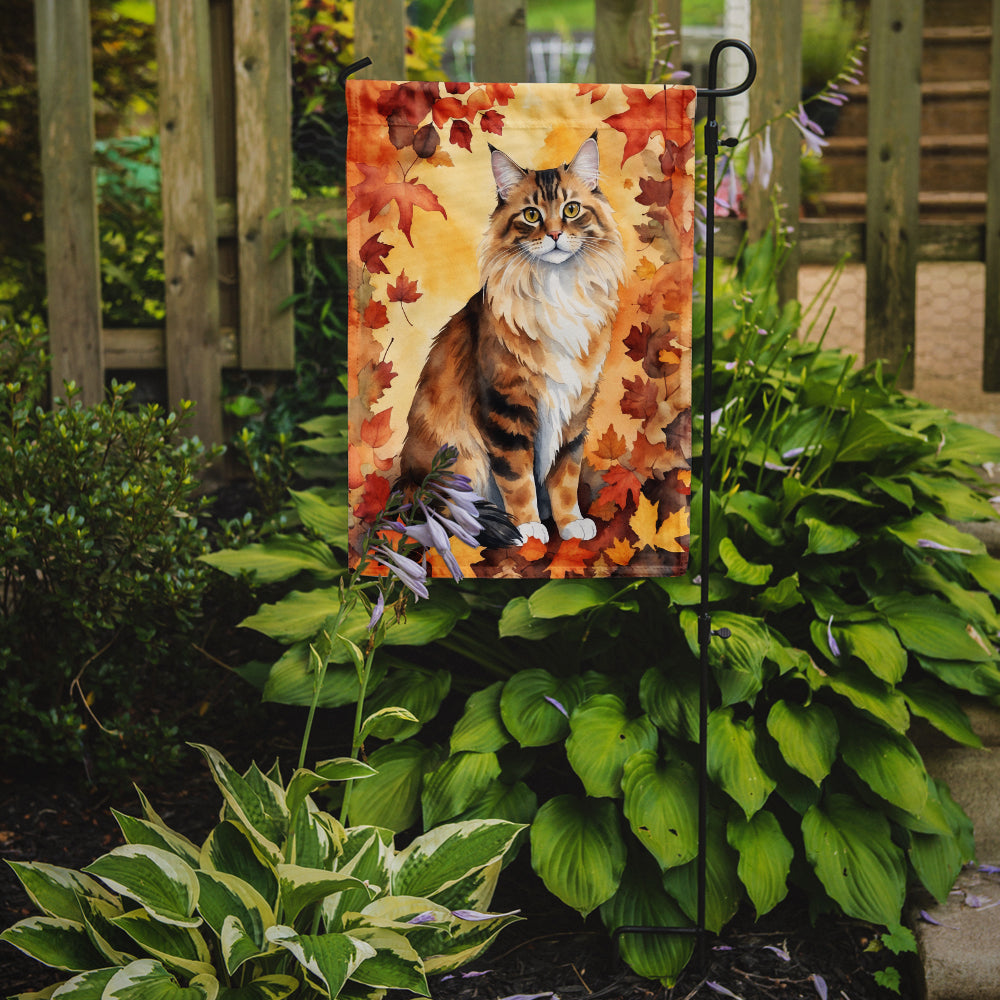 Garden Flag featuring breed specific Cymric artwork. Enhance the beauty of your garden, patio, or yard with Caroline's Treasures Decorative Garden Flag, proudly made in the USA. Crafted from two pieces of thick, double-sided polyester fabric, this 2-ply garden flag is designed to withstand various weather conditions, making it water-resistant and weatherproof. Featuring correctly readable words on both sides, this garden flag offers a delightful visual experience from any angle. With its heavier weight, it stands out among other garden flags, ensuring stability and durability even in wind, rain, and snow. Measuring approximately 11 1/4 inches by 15 1/2 inches, this flag allows you to personalize your outdoor decor. It comes with a 1 1/2-inch sleeve sewn in, allowing easy attachment to any standard garden flag stand or garden size porch hanger (sold separately). Make a statement in your outdoor space with Caroline's Treasures Decorative Garden Flag, a vibrant and high-quality flag that adds color and personality to your surroundings. Proudly made in the USA, it's a symbol of quality craftsmanship and attention to detail.