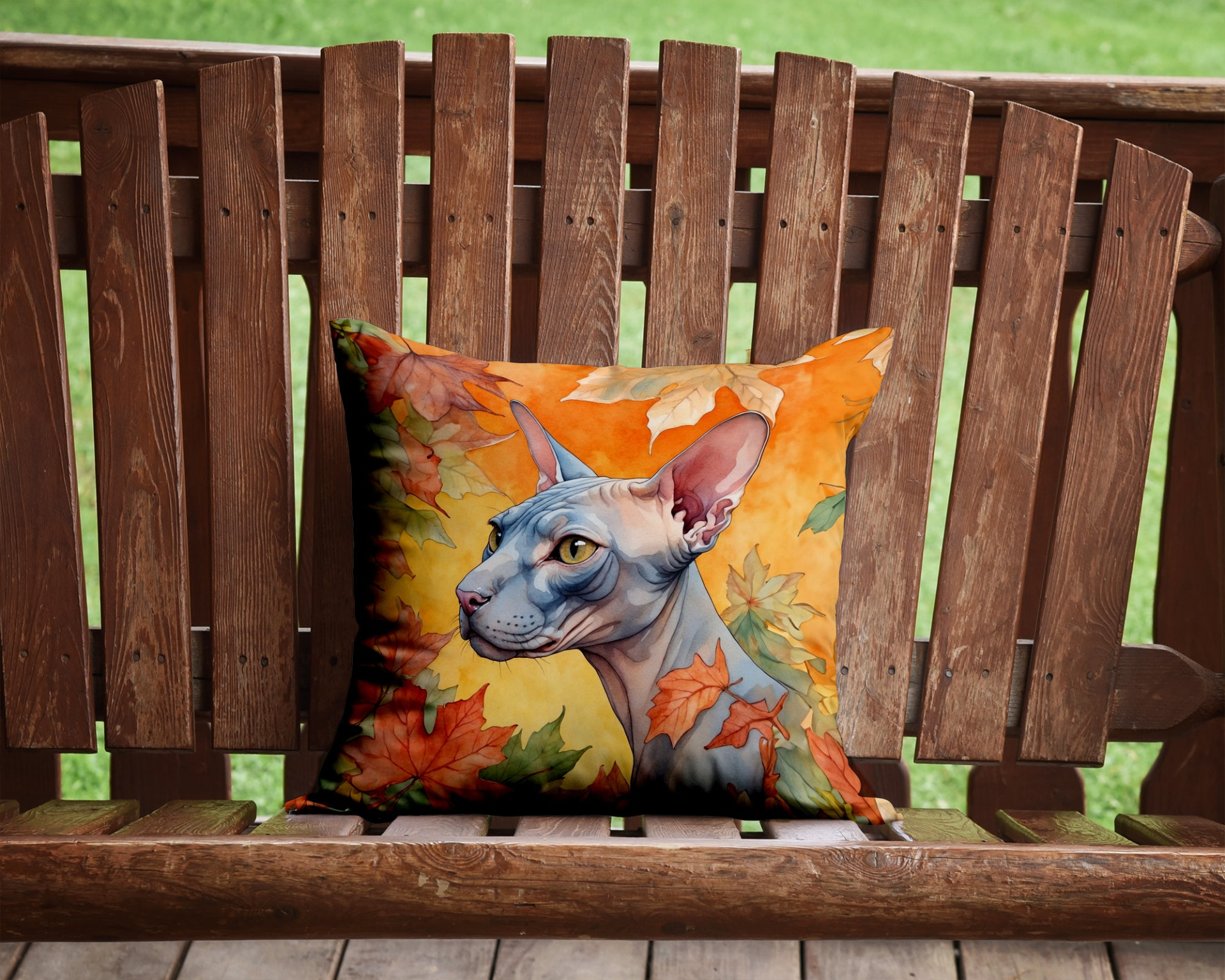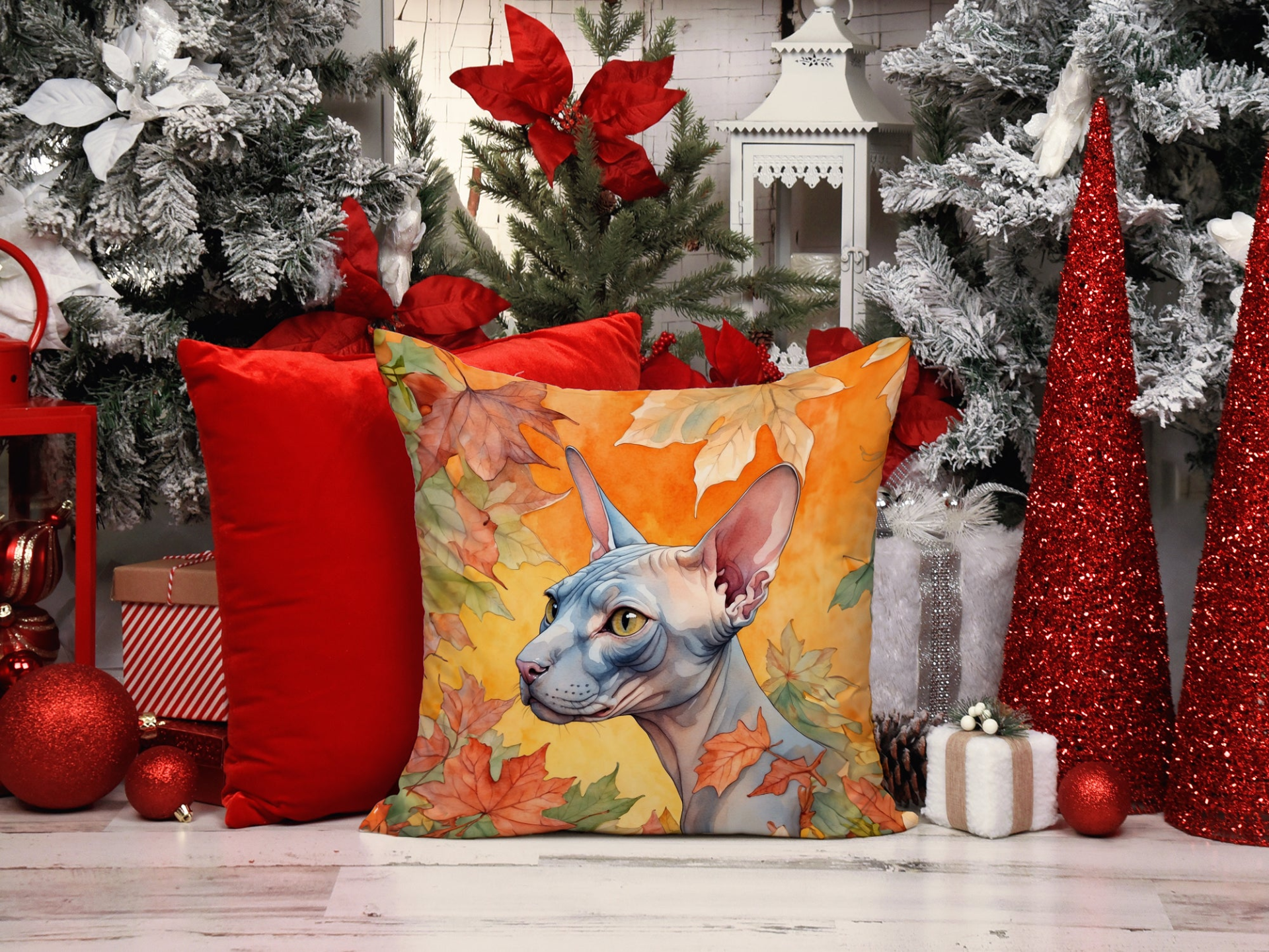 Throw Pillow featuring breed specific Donskoy Don Sphynx artwork. Celebrate Halloween with this Halloween Pillow. Add a touch of vibrancy and comfort to your outdoor seating with Caroline's Treasures Fabric Decorative Pillow. Measuring approximately 14 inches by 14 inches, this outdoor pillow is crafted to elevate the appeal of your patio furniture, infusing it with vivid color and artistic flair. The pillow includes a 100% Polyester Fabric sham filled with a quality pillow form to provide superior comfort. Innovatively made from our brand new material, specifically woven for its water resistance, this pillow is designed for durability. The soft canvas fabric offers versatility in use, fit for your indoor couch or your outdoor patio, porch, or veranda. The fabric is dyed with colorfast dyes built for resilience against weather conditions, ensuring the pillow retains its beauty over time. Constructed by sewing three fabric pieces to create a sham, the polyester insert is then nestled inside to form the pillow, resulting in an overstuffed pillow that maintains its shape. Both the sham and the pillow insert are proudly made in the United States. As the pillows are handcrafted, there may be minor variations in size, further enhancing their unique charm. Experience comfort in style with Caroline's Treasures Fabric Decorative Pillow.