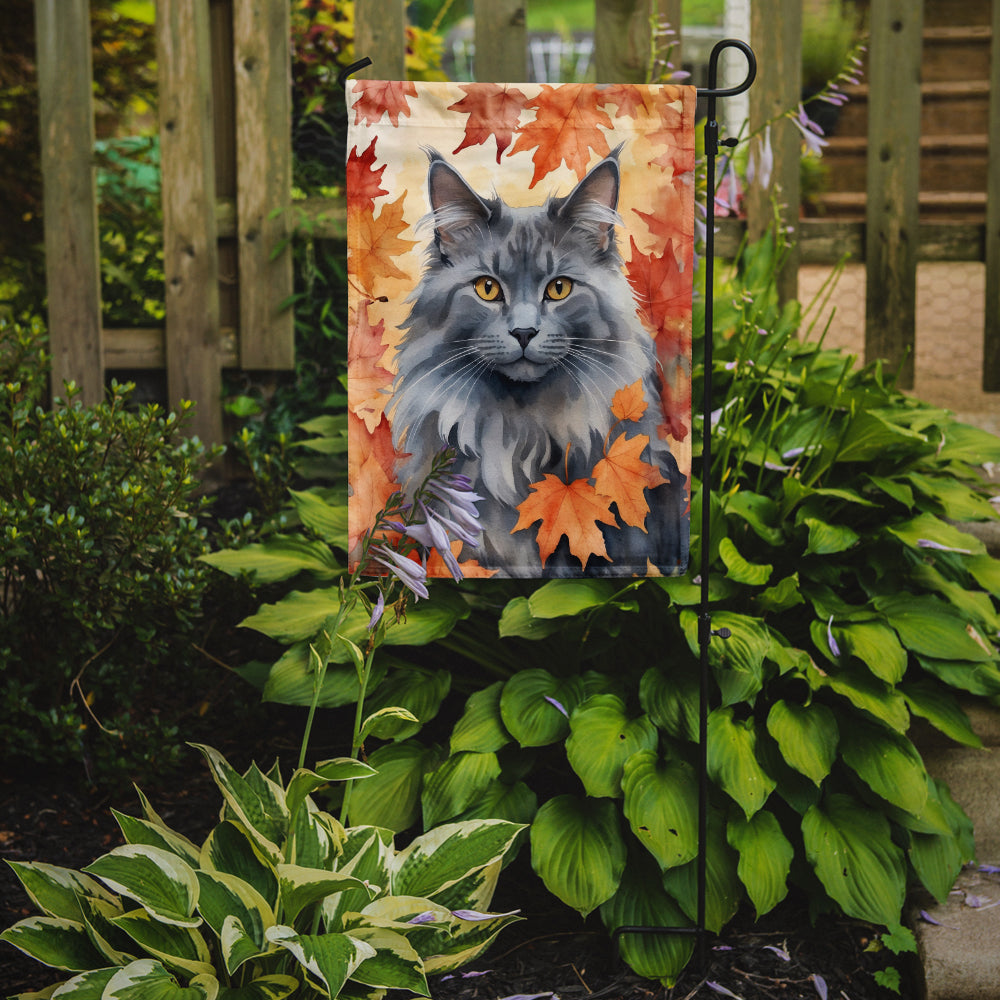 Garden Flag featuring breed specific Nebelung artwork. Enhance the beauty of your garden, patio, or yard with Caroline's Treasures Decorative Garden Flag, proudly made in the USA. Crafted from two pieces of thick, double-sided polyester fabric, this 2-ply garden flag is designed to withstand various weather conditions, making it water-resistant and weatherproof. Featuring correctly readable words on both sides, this garden flag offers a delightful visual experience from any angle. With its heavier weight, it stands out among other garden flags, ensuring stability and durability even in wind, rain, and snow. Measuring approximately 11 1/4 inches by 15 1/2 inches, this flag allows you to personalize your outdoor decor. It comes with a 1 1/2-inch sleeve sewn in, allowing easy attachment to any standard garden flag stand or garden size porch hanger (sold separately). Make a statement in your outdoor space with Caroline's Treasures Decorative Garden Flag, a vibrant and high-quality flag that adds color and personality to your surroundings. Proudly made in the USA, it's a symbol of quality craftsmanship and attention to detail.