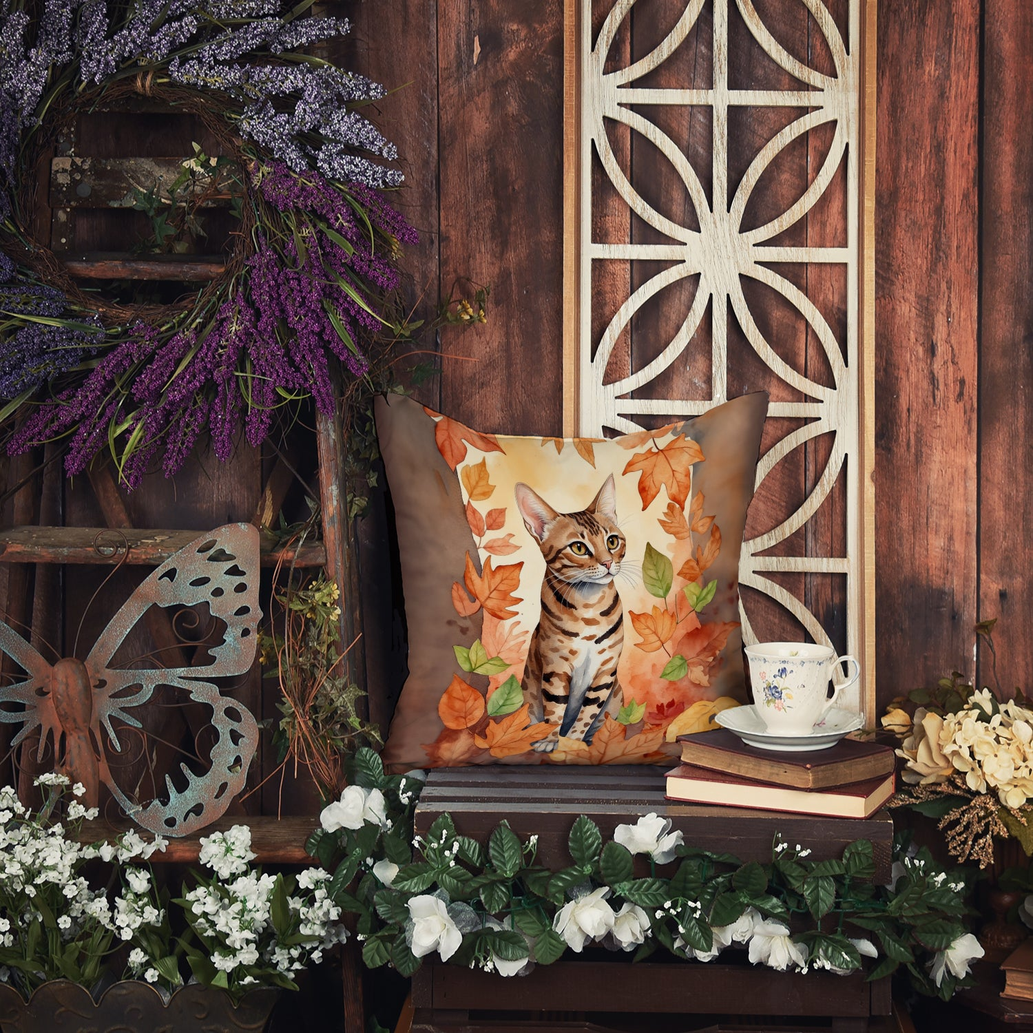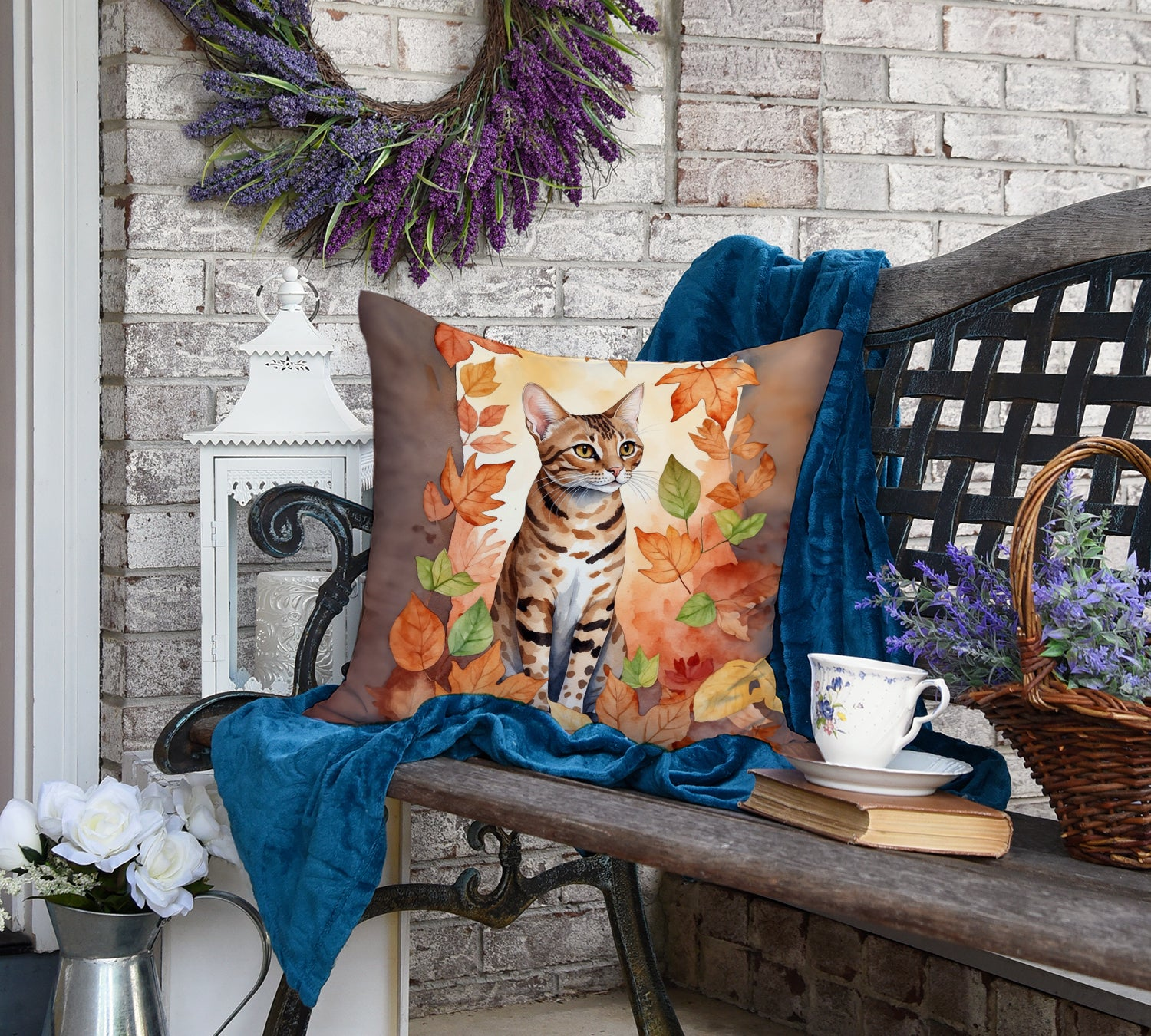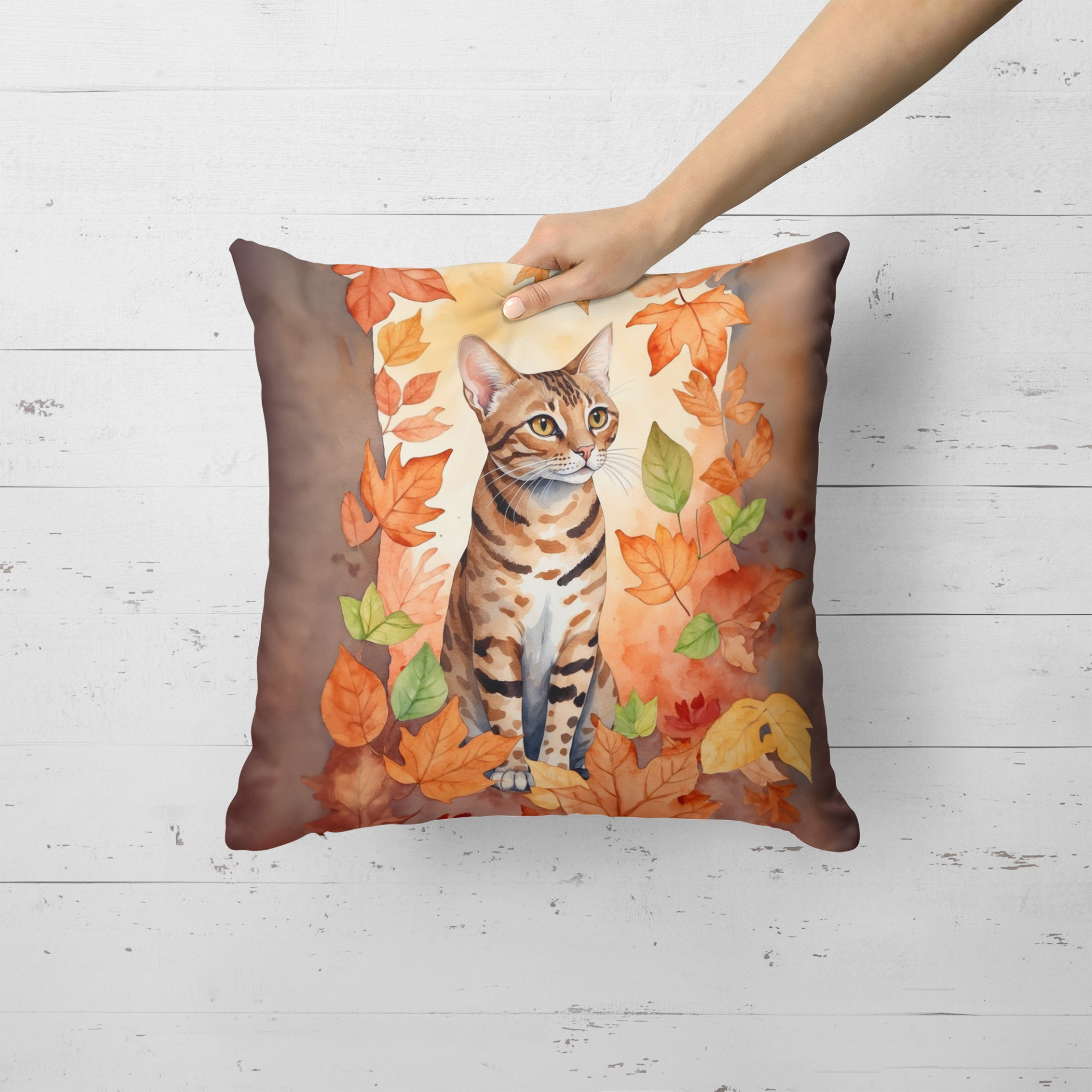 Throw Pillow featuring breed specific Ocicat artwork. Celebrate Halloween with this Halloween Pillow. Revitalize your outdoor or indoor living space with Caroline's Treasures 18x18 Fabric Decorative Pillow. With a generously sized dimension of approximately 18 inches by 18 inches, this pillow makes a comfortable and aesthetic addition to any seating area. Made from a unique, water-resistant material developed by Caroline's Treasures, the pillow sham is 100% polyester fabric that's durable and ready to weather any condition. Its vibrant, full-color artwork will not fade over time as it is dyed with color-fast dyes. Whether you place it on your patio furniture, porch, veranda, or indoor couch, its soft canvas fabric ensures a cozy experience. The pillow is handcrafted in the United States, featuring a sham created from three pieces of fabric and a polyester insert for enduring shape and overstuffed comfort. Despite being robustly built to endure the outdoors, it is as soft and snug as your favorite indoor cushions. Please note, as all our pillows are handmade, sizes may vary slightly, adding to the charm of this unique decorative item.