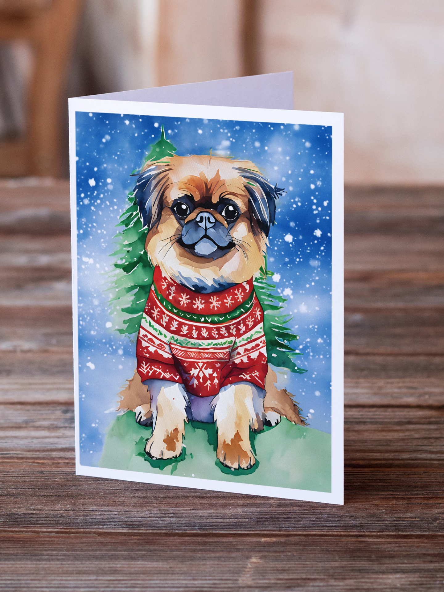 Greeting Cards Pack of 8 featuring breed specific Pekingese artwork. Celebrate Christmas with this Christmas . Celebrate special moments with Caroline's Treasures Printed Greeting Card Pack. This pack includes eight beautifully folded 5x7 cards, accompanied by eight matching white envelopes. With blank interiors, these cards provide ample space for your personalized messages and heartfelt holiday greetings. Each card features captivating full-color artwork, meticulously printed in our facility on high-quality 80 lb cover stock or 216 GSM. The super smooth finish of the white cards enhances the visual impact of the artwork, creating a truly stunning presentation. Designed by our talented in-house artists or licensed artists, the artwork on these cards showcases their creativity and attention to detail. From vibrant illustrations to captivating designs, each card tells its own unique story. Whether it's for birthdays, anniversaries, holidays, or any special occasion, Caroline's Treasures Greeting Card Pack is the perfect way to convey your heartfelt sentiments. Share joy, love, and warm wishes with these exquisite cards and make every moment unforgettable.