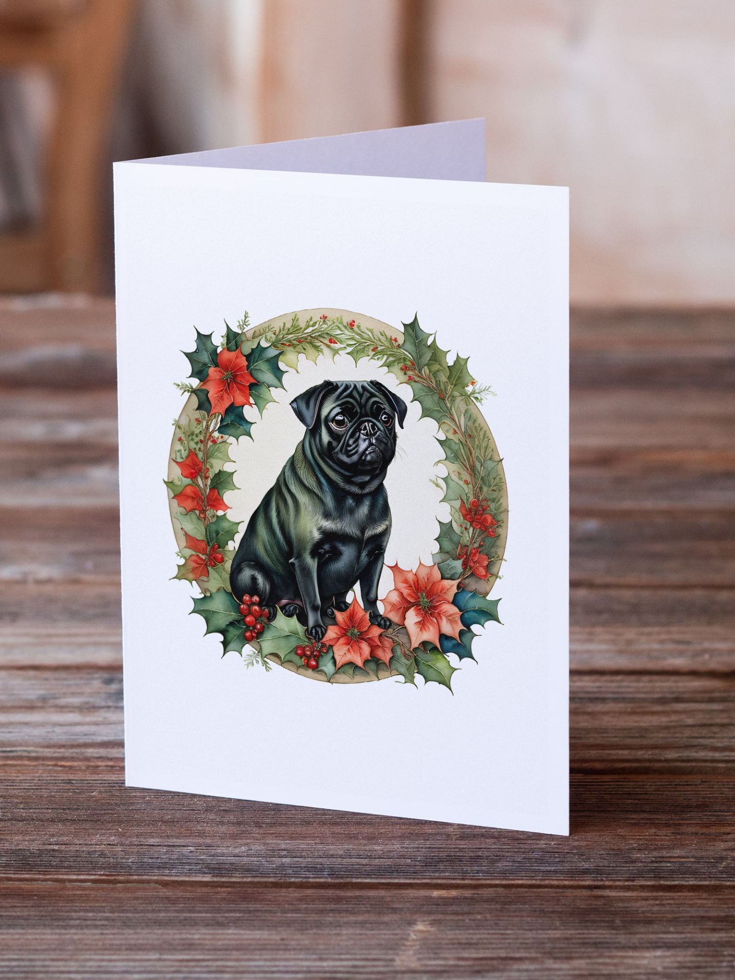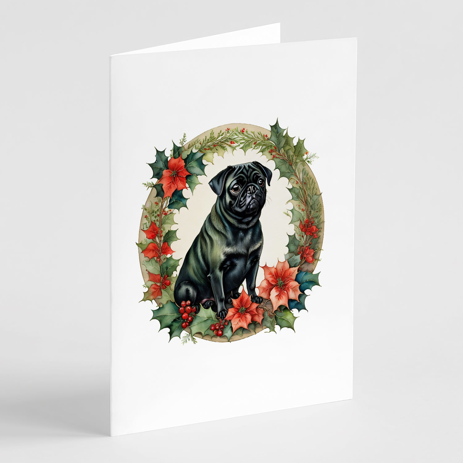 Greeting Cards Pack of 8 featuring breed specific Pug artwork. Celebrate Christmas with this Christmas . Celebrate special moments with Caroline's Treasures Printed Greeting Card Pack. This pack includes eight beautifully folded 5x7 cards, accompanied by eight matching white envelopes. With blank interiors, these cards provide ample space for your personalized messages and heartfelt holiday greetings. Each card features captivating full-color artwork, meticulously printed in our facility on high-quality 80 lb cover stock or 216 GSM. The super smooth finish of the white cards enhances the visual impact of the artwork, creating a truly stunning presentation. Designed by our talented in-house artists or licensed artists, the artwork on these cards showcases their creativity and attention to detail. From vibrant illustrations to captivating designs, each card tells its own unique story. Whether it's for birthdays, anniversaries, holidays, or any special occasion, Caroline's Treasures Greeting Card Pack is the perfect way to convey your heartfelt sentiments. Share joy, love, and warm wishes with these exquisite cards and make every moment unforgettable.