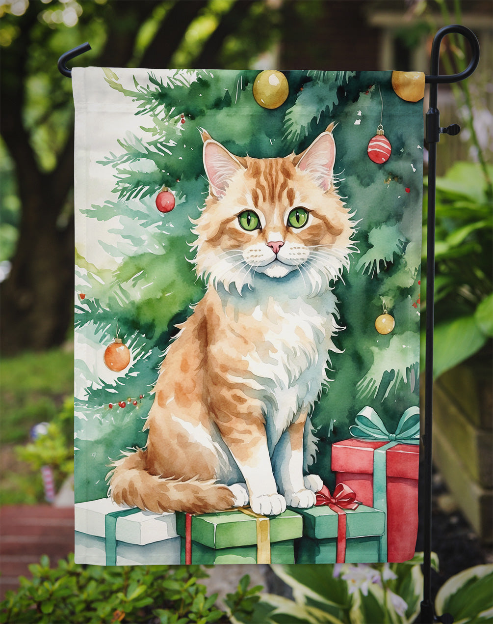 Garden Flag featuring breed specific Skookum Cat artwork. Celebrate Christmas with this Christmas Garden Flag. Enhance the beauty of your garden, patio, or yard with Caroline's Treasures Decorative Garden Flag, proudly made in the USA. Crafted from two pieces of thick, double-sided polyester fabric, this 2-ply garden flag is designed to withstand various weather conditions, making it water-resistant and weatherproof. Featuring correctly readable words on both sides, this garden flag offers a delightful visual experience from any angle. With its heavier weight, it stands out among other garden flags, ensuring stability and durability even in wind, rain, and snow. Measuring approximately 11 1/4 inches by 15 1/2 inches, this flag allows you to personalize your outdoor decor. It comes with a 1 1/2-inch sleeve sewn in, allowing easy attachment to any standard garden flag stand or garden size porch hanger (sold separately). Make a statement in your outdoor space with Caroline's Treasures Decorative Garden Flag, a vibrant and high-quality flag that adds color and personality to your surroundings. Proudly made in the USA, it's a symbol of quality craftsmanship and attention to detail.