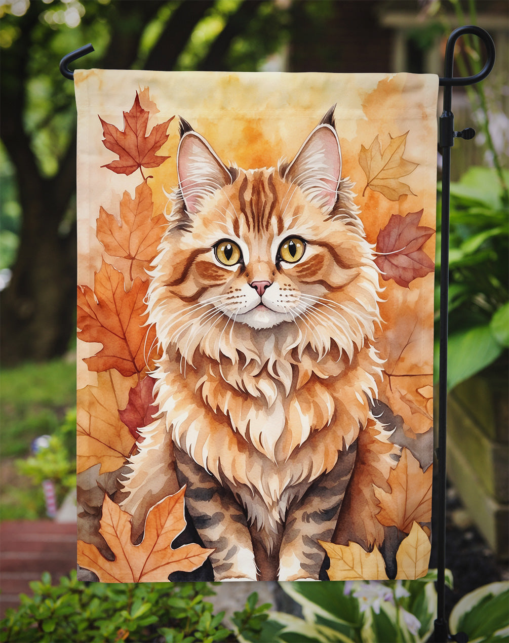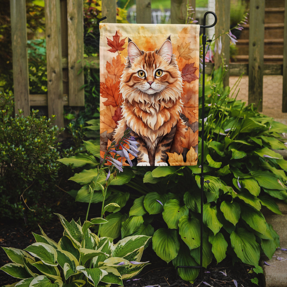 Skookum Cat in Fall Leaves Garden Flag