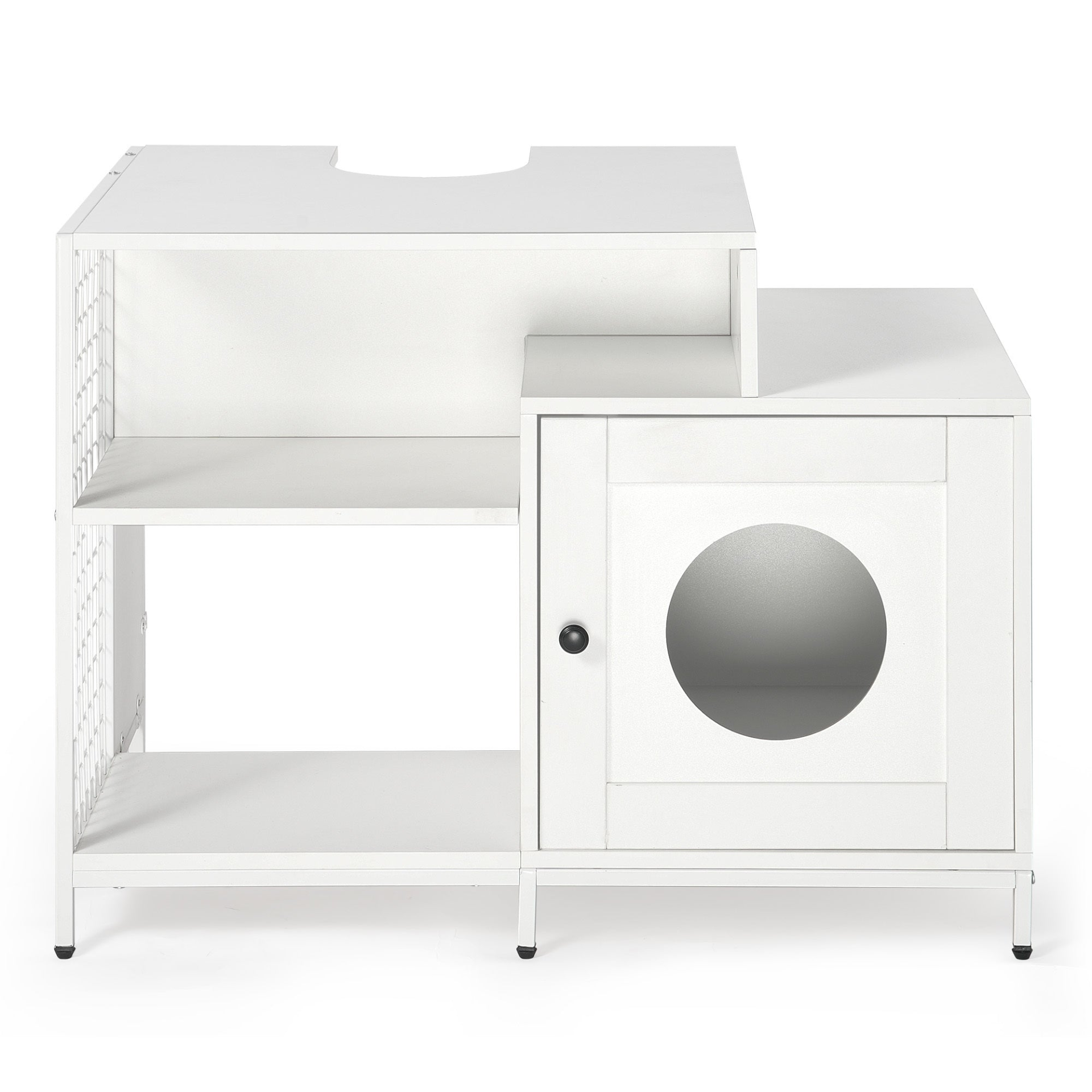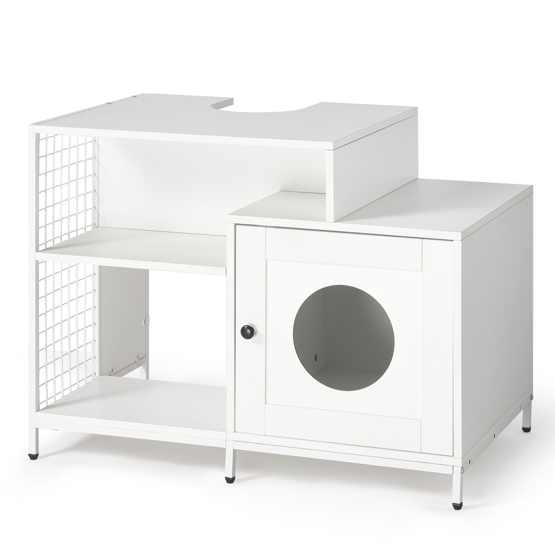 Cat litter box enclosure for bathroom, Hidden Litter Pet Washroom with Divider, Indoor Cat House for Large Cats, White