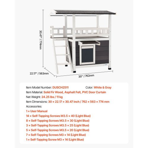 Item Material: Solid Fir Wood, Asphalt Felt, PVC DoorCurtain,Color: White & Gray,Item Model Number: DUSCH2511,ItemDimensions: 30 × 22.17 × 30.47 inch / 762 × 563 × 774 mm,NetWeight: 24.25 lbs / 11 kg