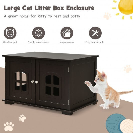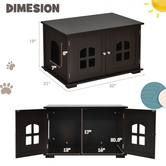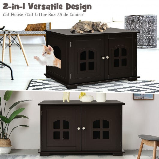 Do you want to take better care of your cat? If your answer is yes all you need is this large-sized pet house. With the side access door and 2 windows on the door the litter box is well ventilated to avoid smelling. Features an interior panel that prevents litter from being kicked out and tracked onto the floor the litter box chest is easy to clean and can always keep your home sanitary and odorless. The high-quality MDF structure and water-proof paint make this litter enclosure more durable and stronger. In addition you can also take this cat house as a cabinet or a bedside table owing to its large storage space and handsome appearance.