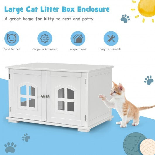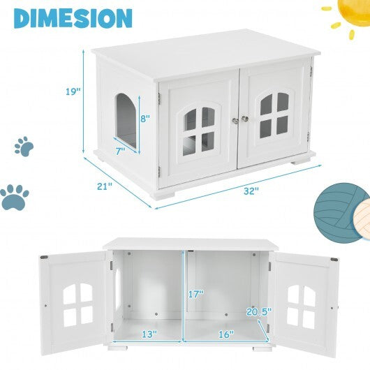 Large Wooden Cat Litter Box Enclosure Hidden Cat Washroom with Divider White