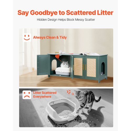 VEVOR Cat Litter Box Enclosure for Multi Cats, 47.2 in HiddenLitter Box Cabinet with 4 Rattan Doors & 2 Entries, Indoor CatWashroom, Wooden Kitty House Furniture, Fit Most Litterboxes,Green