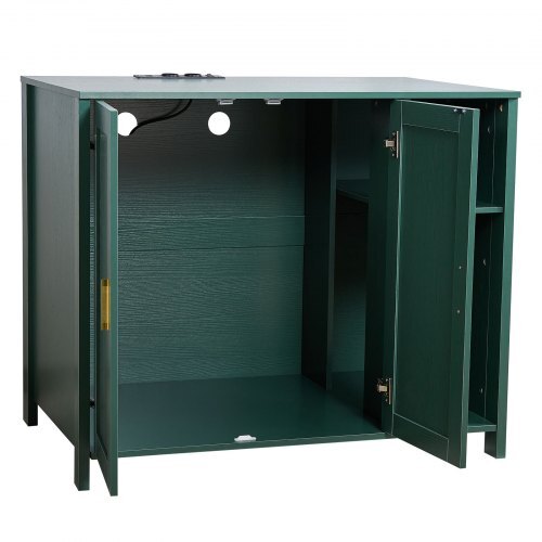 Item Material: P2 Grade Particle Board: 0.59 inch / 15 mm, SidePanels: 0.47 inch / 12 mm, Legs: 0.98 inch / 25 mm,Support Legs: 6pcs, Height: 2.64 inch / 67 mm,Drawer Compartment Length: 9.84 inch/ 250 mm,Power Strip Cord Type: US 3-Prong, Length: ≥4.92 ft / 1.50m,Color Style: Dark Green + Gold Handles,Divider Opening: 250 ×3.35 inch / 85 mm, ±5.12 inch / ±130 mm Height Adjustable,ChargingPower: DC 5V, 2.1A × 2,Weight Capacity: Top: 88 lb / 40 kg, Bottom:99.20 lb / 45 kg,Item Model Number: KLCB-08,Number of Doors:2,Rated Power: 1500W,Item Dimensions: 41.34 × 26.77 × 34.84 inch /1050 × 680 × 885 mm,Cat Litter Compartment Length: 31.50 inch / 800mm,Number of Windows: 1 (Side Window + Adjustable Divider Door),NetWeight: 78.4 lbs / 35.55 kg,Power Strip Material: Flame-RetardantPC Shell, Tin-Phosphor Bronze Conductors,Side Window Size: 9.72 ×15.16 inch / 247 × 385 mm, ±5.12 inch / ±130 mm HeightAdjustable,Power Input: AC 125V; 50/60Hz; 12A; Red Power SwitchIndicator