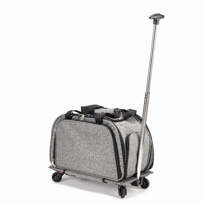 Petique Happy Camper Pet Carrier has a unique design that transforms a pet carrier on wheels for a smooth 360-degree ride to transforming into a well-ventilated house with four expandable sides! The spacious pet carrier helps reduce your pet's stress and anxiety while giving them more space to stretch and feel comfortable. With four extendable mesh sides, your pets can move around freely, broaden their view, and increase air circulation while staying protected inside. When you think traveling with your pets has never been more convenient, the Happy Camper Pet Carrier provides three essential carrying options to carry your paw-tner around: The telescoping handle to smoothly roll them around on four wheels, carrying them using the comfortably padded shoulder strap, or carrying them using the durable top handle straps.