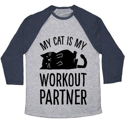 MY CAT IS MY WORKOUT PARTNER UNISEX TRI-BLEND BASEBALL TEE