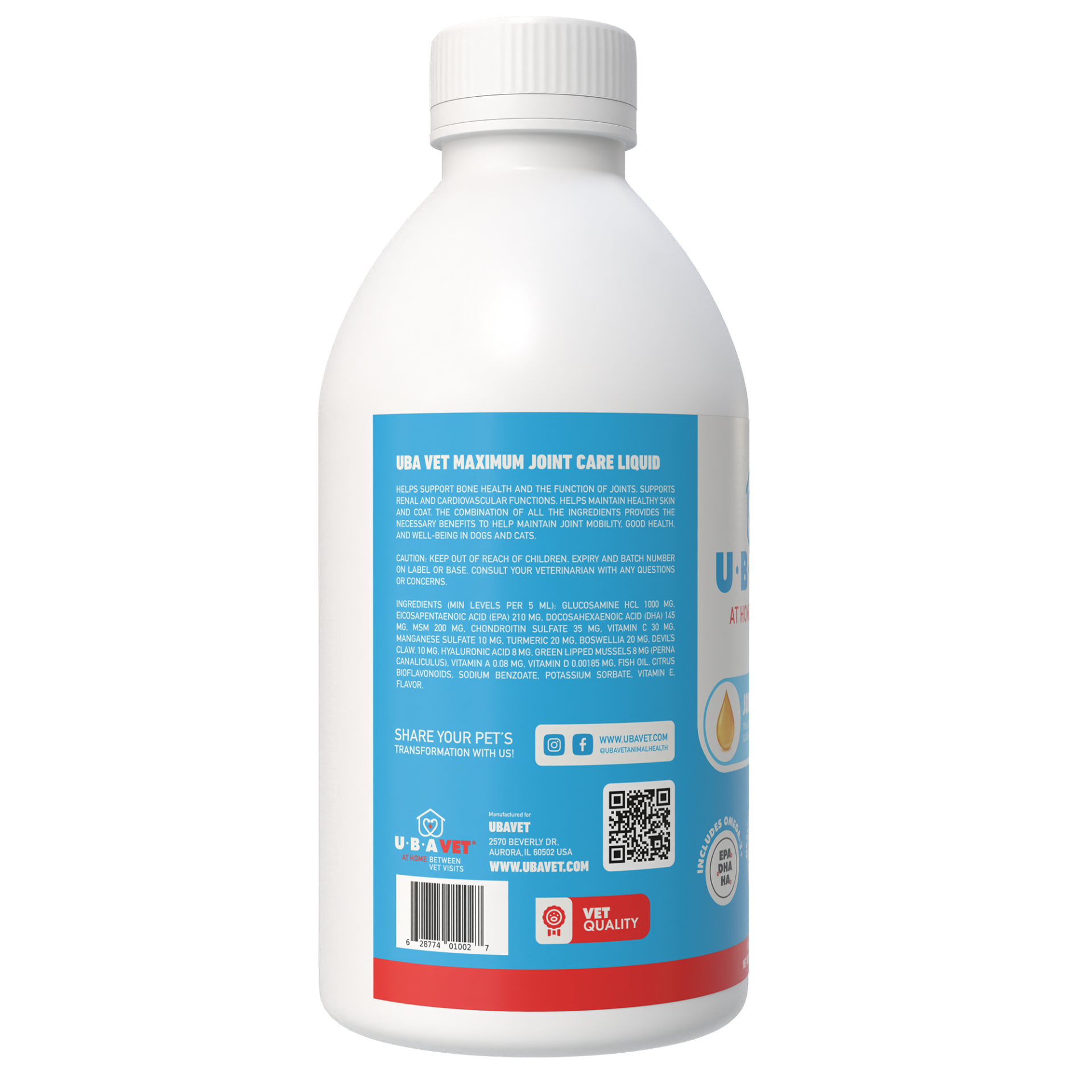 Help your pet move freely, comfortably, and joyfully with UBAVET Joint Power MEG Maximum Joint Care Liquid, an advanced, nutrient-rich formula designed to support joint flexibility, cartilage health, and overall vitality in both dogs and cats. This premium supplement combines Glucosamine, Chondroitin, MSM, and Green-Lipped Mussels to cushion joints, reduce inflammation, and maintain long-term mobility.