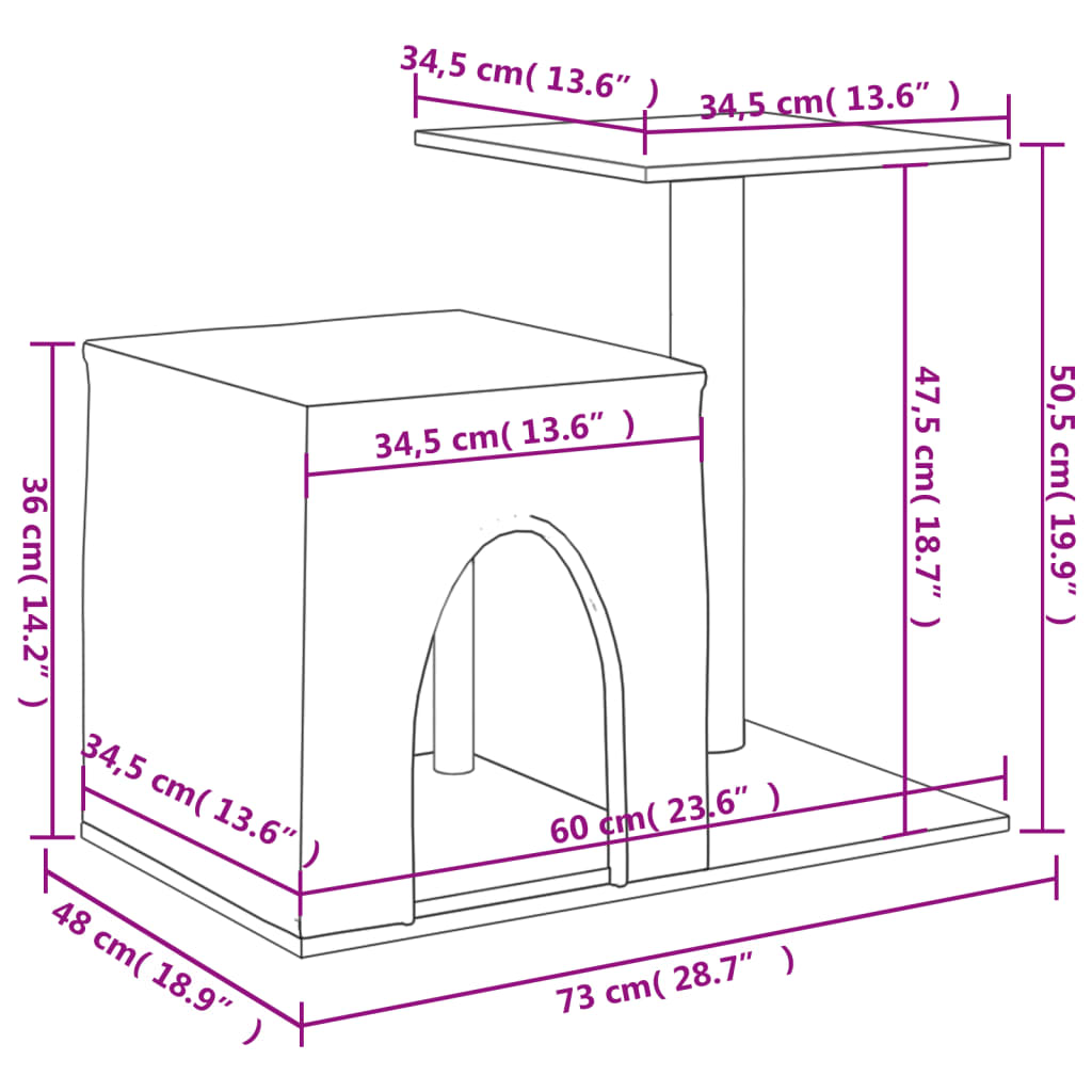 vidaXL Cat Tree Light grey Wood, plush, sisal 19.9 in tall Durable
