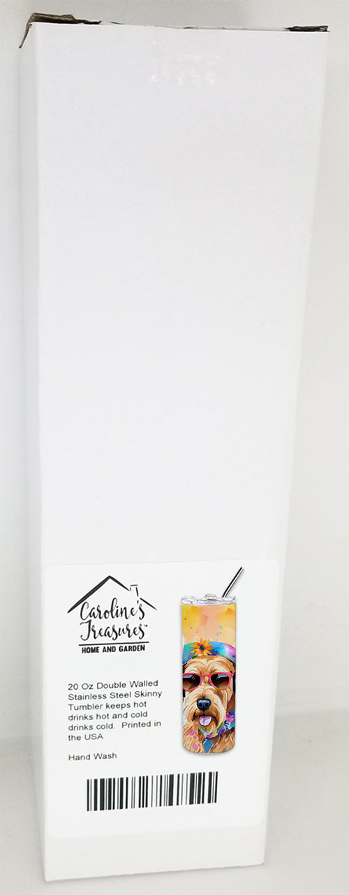 Stainless Steel Skinny Tumbler featuring breed specific Airedale Terrier artwork. Elevate your hydration experience with our Decorative Stainless Steel 20 oz Skinny Tumbler from Caroline's Treasures. This vacuum-insulated, double-walled travel mug is designed to keep your beverages hot or cold for prolonged periods, making it perfect for your coffee, tea, or cocktails. Its sleek and easy-to-grasp design, complemented by the vibrant, top-to-bottom artwork, makes it a stylish accessory for both men and women. Equipped with a secure, slide-open lid, you can enjoy your drinks without worrying about spills, while the included reusable metal straw contributes to reducing plastic use and promoting sustainability. Crafted with quality stainless steel, the tumbler is 100% BPA and Phthalate free, ensuring a safe, non-toxic experience with every sip. Not just functional, this skinny tumbler, complete with gift box, serves as a thoughtful gift for women, mothers, or any loved one. Enjoy your favorite beverages on the go in style, while making a positive impact on the environment. Remember, it's not just a drinkware, it's a lifestyle accessory! Please note: For optimum longevity, hand washing is recommended.
