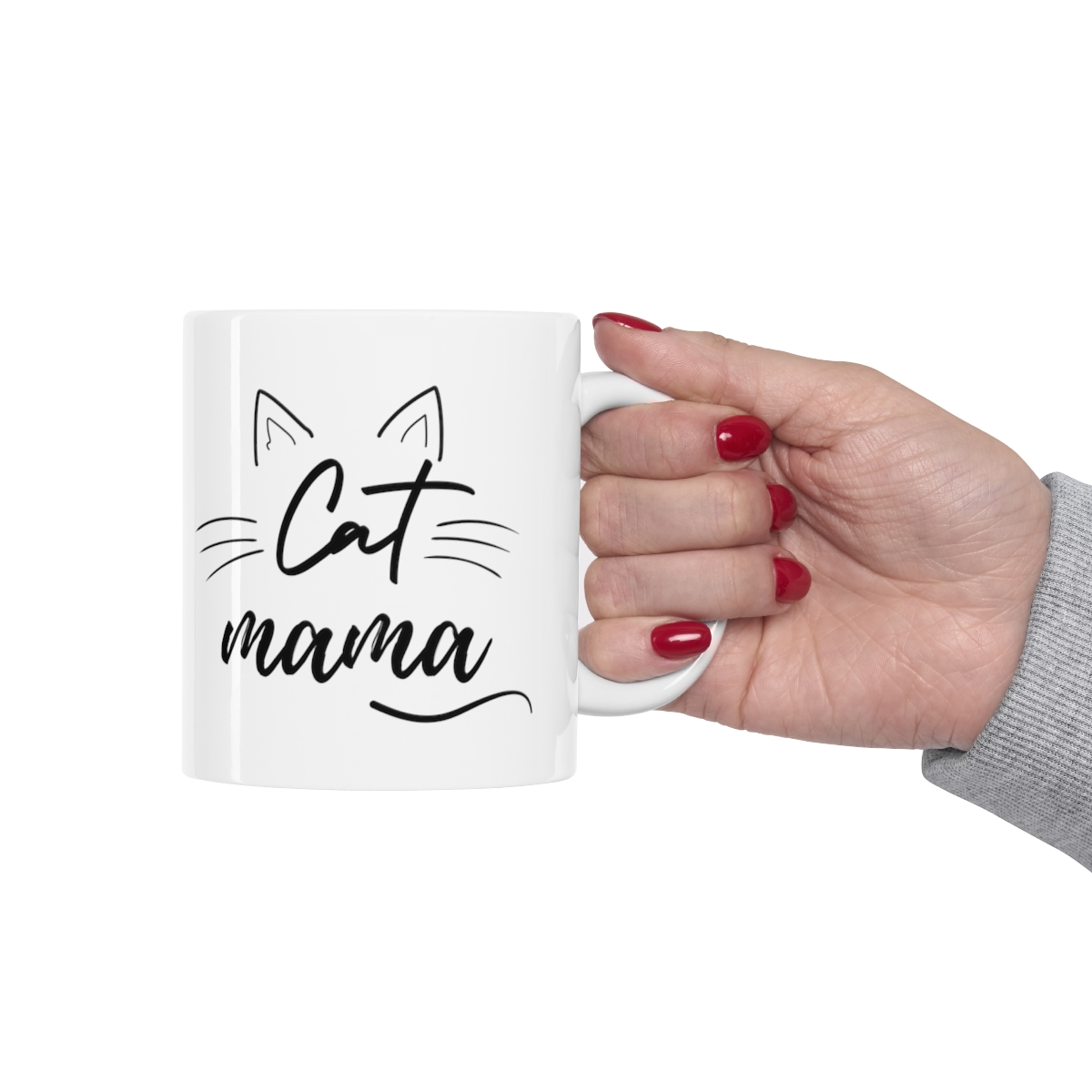 Embrace the independent spirit of your feline friends with the 'Cat Mama' ceramic mug. This 11oz mug is a humorous nod to every cat lover's daily reality, making it a perfect addition to your mug collection or a delightful gift for a fellow cat enthusiast.