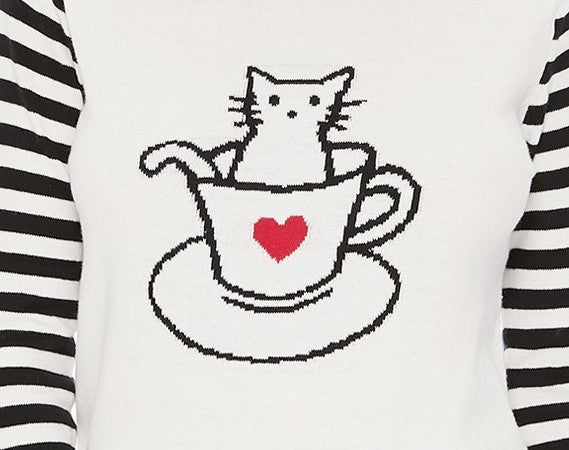 - Cat in the cup ! Jacquard cat motif sweater top.