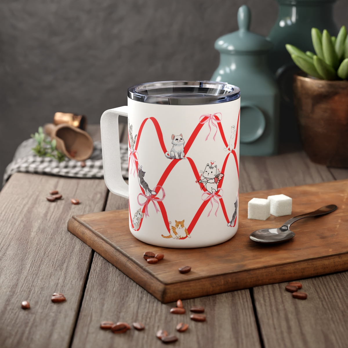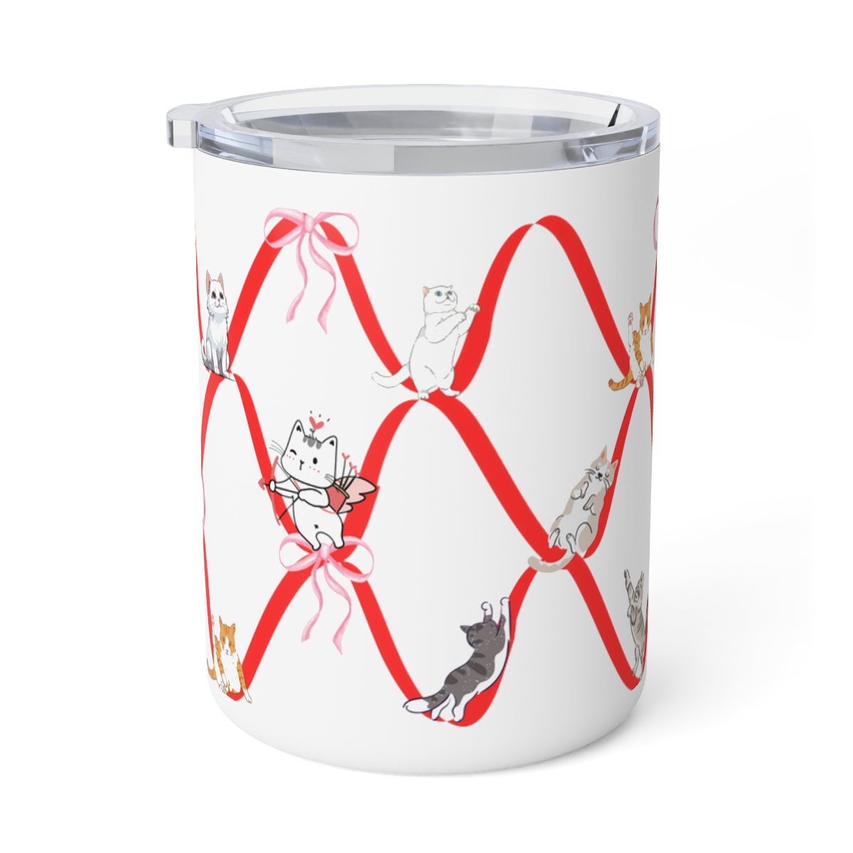 Embrace your love for cats and coffee with the 'Feline In Love' Insulated Coffee Mug. Designed for cat enthusiasts and perfect for Valentine's Day, this 10oz travel mug combines functionality with a touch of feline charm.