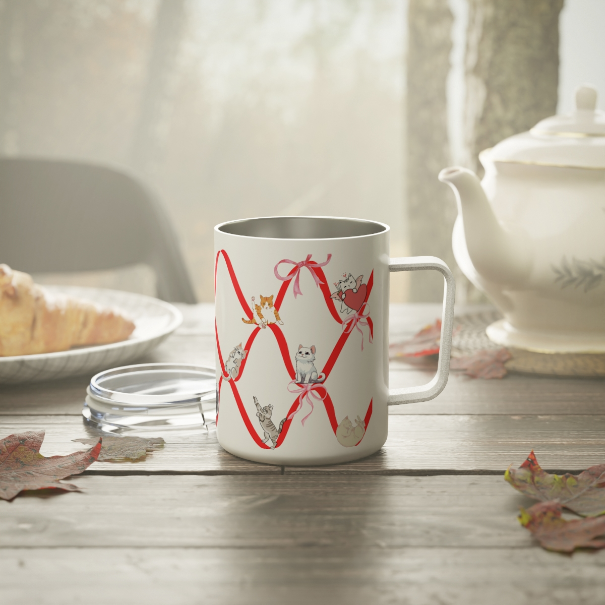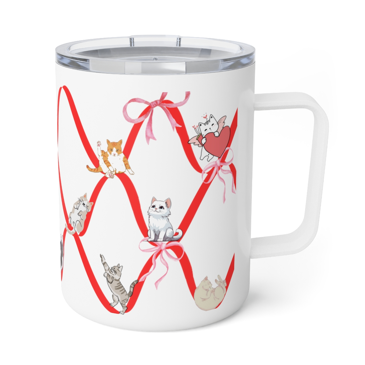 'Feline In Love' Cat Themed Valentine's Cups - Insulated Coffee Mug, 10oz