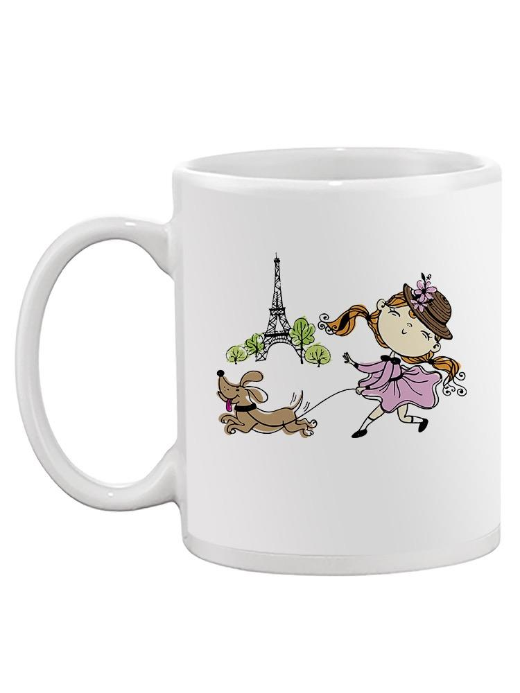 Girl And Dog In Paris Mug -SPIdeals Designs - 11oz / Unisex / White is backordered and will ship as soon as it is back in stock.