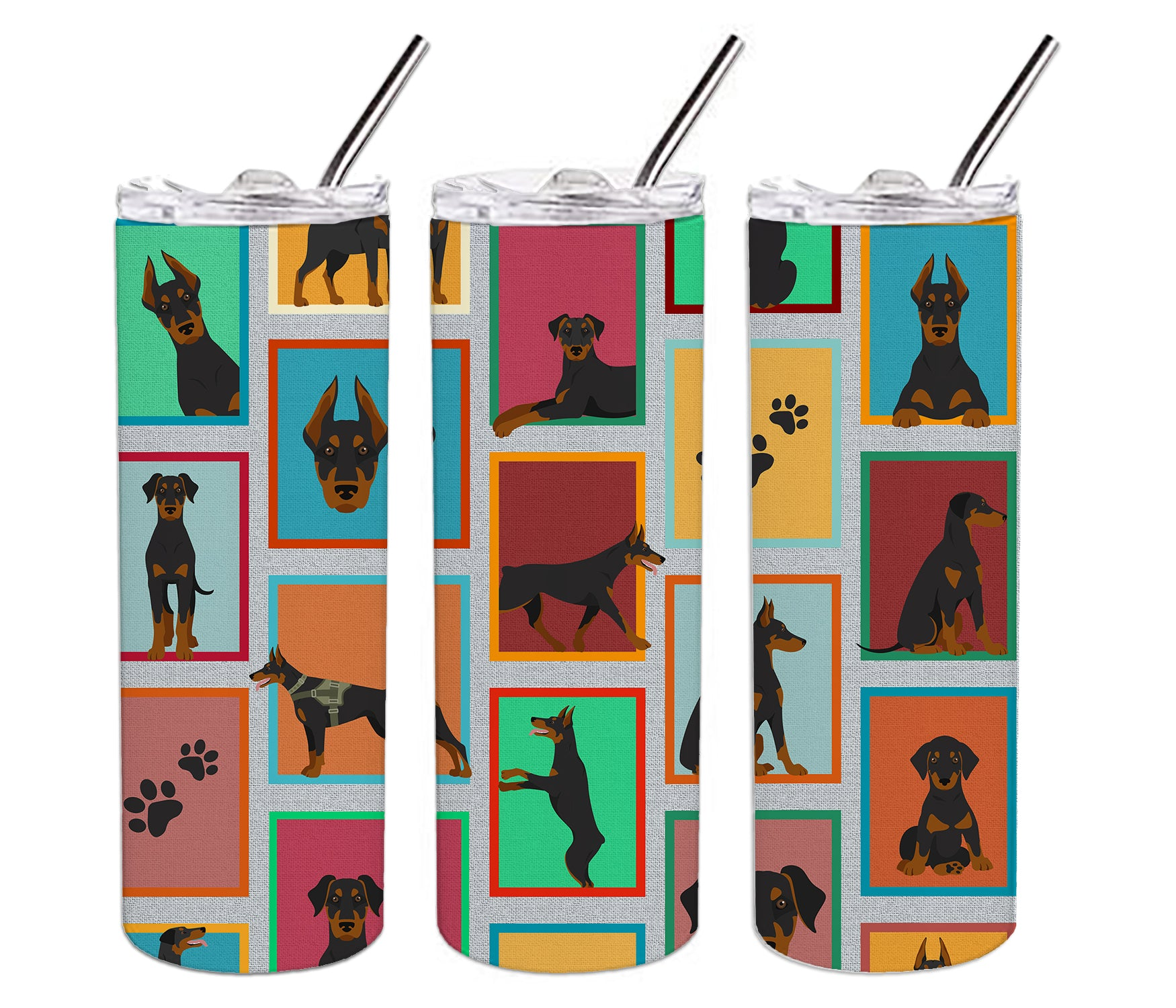 Stainless Steel Skinny Tumbler featuring breed specific Doberman Pinscher artwork. Elevate your hydration experience with our Decorative Stainless Steel 20 oz Skinny Tumbler from Caroline's Treasures. This vacuum-insulated, double-walled travel mug is designed to keep your beverages hot or cold for prolonged periods, making it perfect for your coffee, tea, or cocktails. Its sleek and easy-to-grasp design, complemented by the vibrant, top-to-bottom artwork, makes it a stylish accessory for both men and women. Equipped with a secure, slide-open lid, you can enjoy your drinks without worrying about spills, while the included reusable metal straw contributes to reducing plastic use and promoting sustainability. Crafted with quality stainless steel, the tumbler is 100% BPA and Phthalate free, ensuring a safe, non-toxic experience with every sip. Not just functional, this skinny tumbler, complete with gift box, serves as a thoughtful gift for women, mothers, or any loved one. Enjoy your favorite beverages on the go in style, while making a positive impact on the environment. Remember, it's not just a drinkware, it's a lifestyle accessory! Please note: For optimum longevity, hand washing is recommended.
