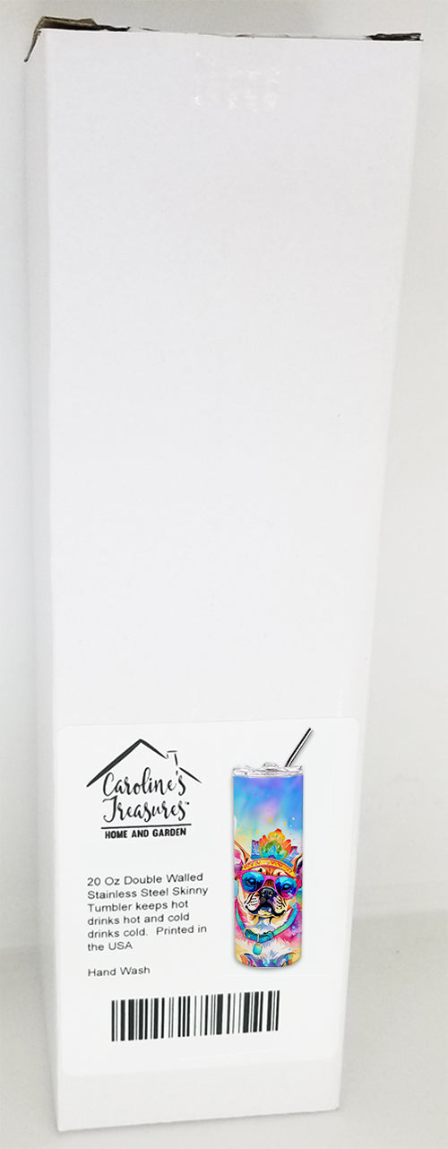 Stainless Steel Skinny Tumbler featuring breed specific Pug artwork. Elevate your hydration experience with our Decorative Stainless Steel 20 oz Skinny Tumbler from Caroline's Treasures. This vacuum-insulated, double-walled travel mug is designed to keep your beverages hot or cold for prolonged periods, making it perfect for your coffee, tea, or cocktails. Its sleek and easy-to-grasp design, complemented by the vibrant, top-to-bottom artwork, makes it a stylish accessory for both men and women. Equipped with a secure, slide-open lid, you can enjoy your drinks without worrying about spills, while the included reusable metal straw contributes to reducing plastic use and promoting sustainability. Crafted with quality stainless steel, the tumbler is 100% BPA and Phthalate free, ensuring a safe, non-toxic experience with every sip. Not just functional, this skinny tumbler, complete with gift box, serves as a thoughtful gift for women, mothers, or any loved one. Enjoy your favorite beverages on the go in style, while making a positive impact on the environment. Remember, it's not just a drinkware, it's a lifestyle accessory! Please note: For optimum longevity, hand washing is recommended.