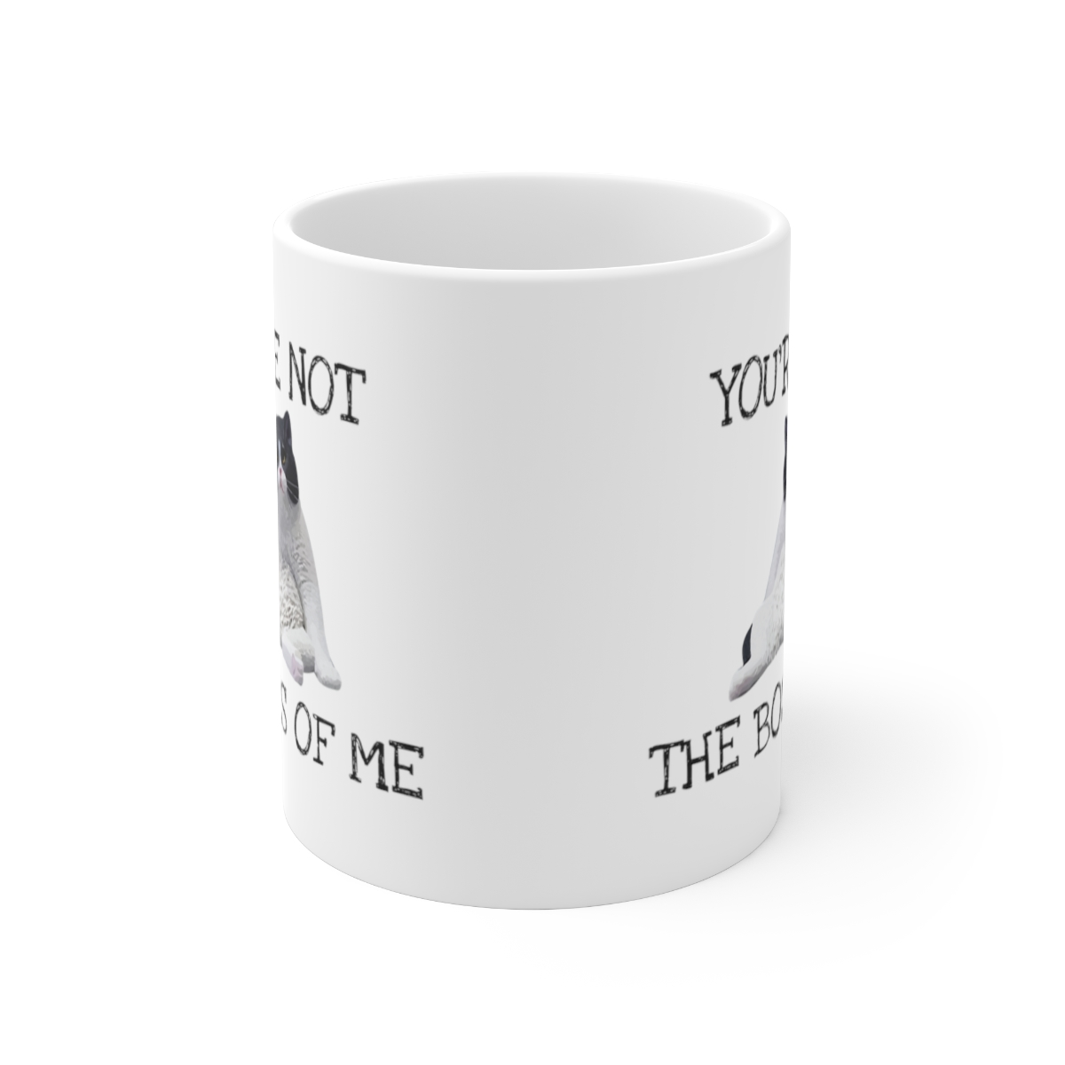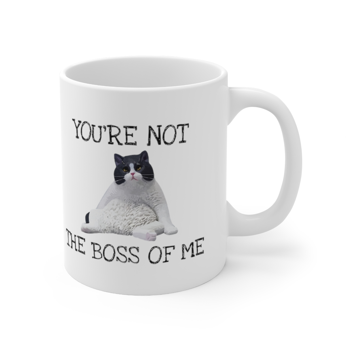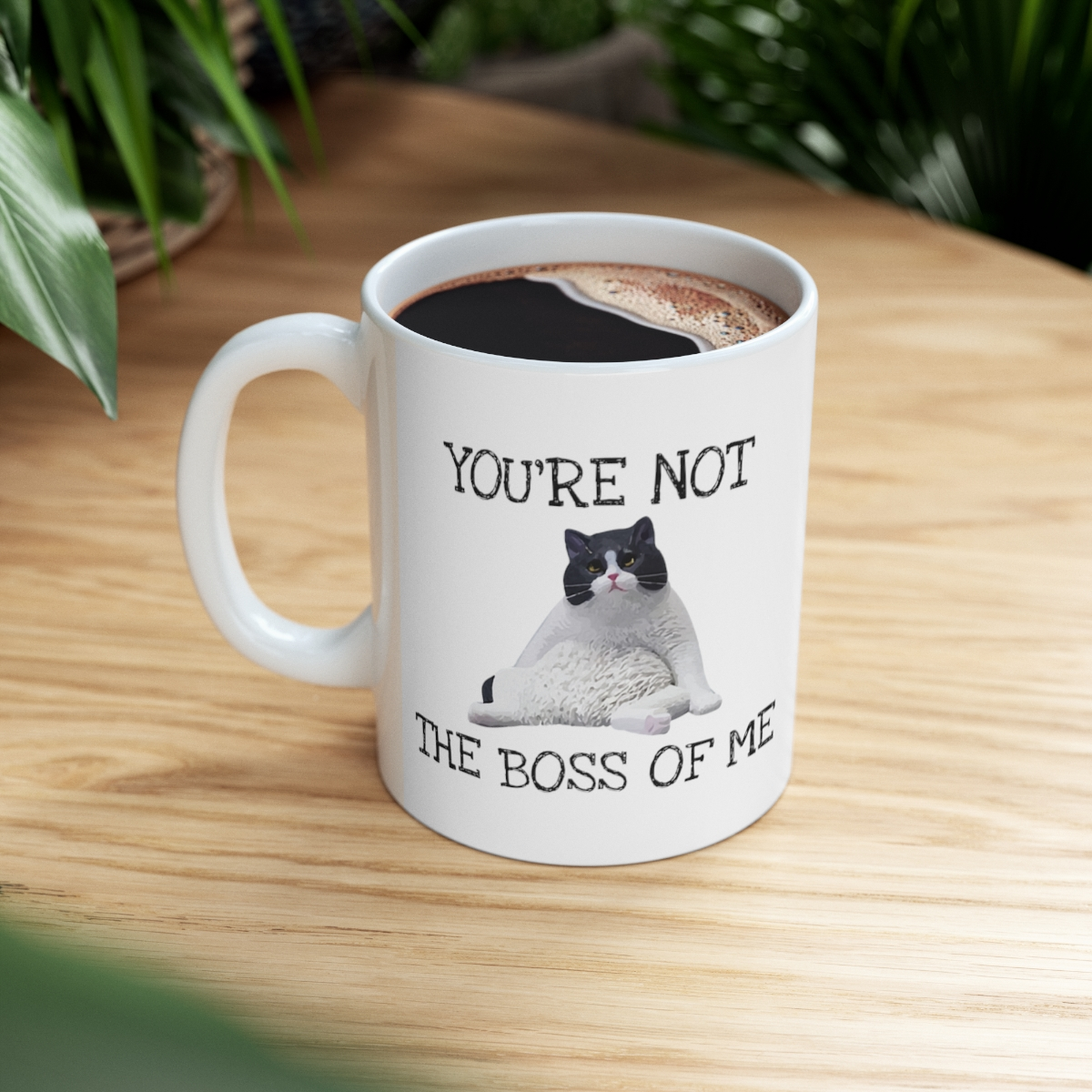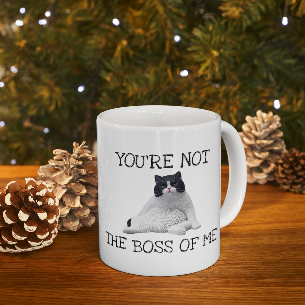 Embrace the independent spirit of your feline friends with the 'You're Not the Boss of Me' ceramic mug. This 11oz mug is a humorous nod to every cat lover's daily reality, making it a perfect addition to your mug collection or a delightful gift for a fellow cat enthusiast.