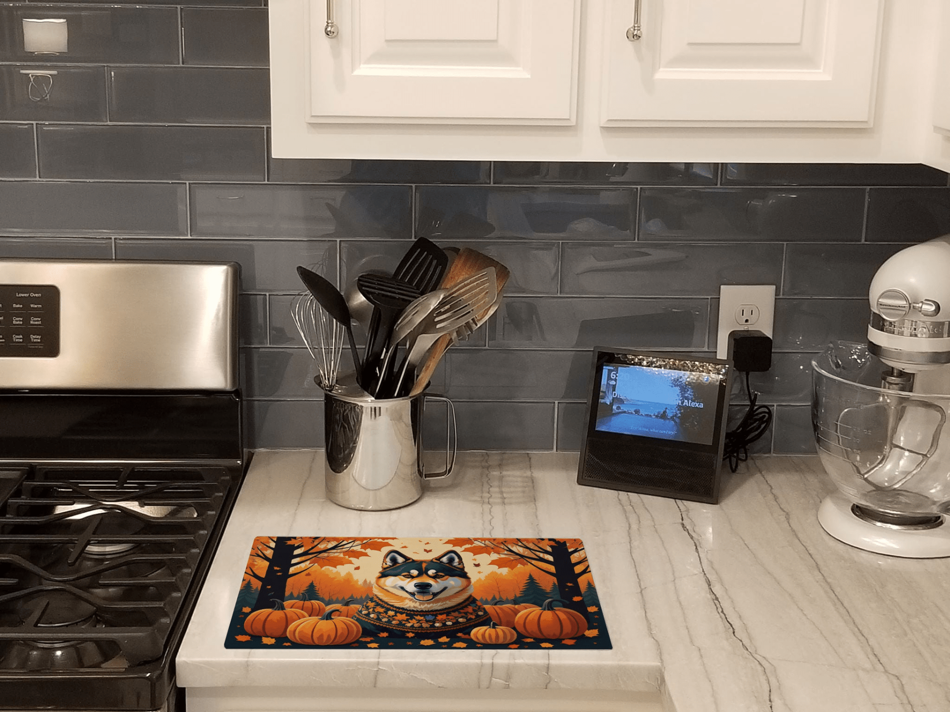 Glass Cutting Board featuring breed specific Akita artwork. Introduce your kitchen to the vibrant, large Decorative Glass Cutting Board from Caroline's Treasures. Crafted from resilient tempered glass, this board is not only a utilitarian necessity but also a colorful art piece. With its generous dimensions of 15 inches in height and 12 inches in length, it offers ample space for all your cutting needs. Every piece showcases captivating artwork from distinguished artists, bringing an aesthetic edge to your kitchen. Beyond its attractive design, this cutting board ensures your countertop stays pristine and unscathed, owing to its heat-resistant properties. Engineered with user convenience in mind, it features non-skid feet for stability, and rounded corners for additional safety. Its robust construction renders it virtually unbreakable, guaranteeing longevity. The board comes with protective feet bumpers, maintaining its position during use. This product is recommended to be hand washed only. Proudly printed and assembled in the United States, this cutting board exemplifies superior craftsmanship. With Caroline's Treasures' Decorative Glass Cutting Board, you're investing in a blend of functionality and artistic flair.