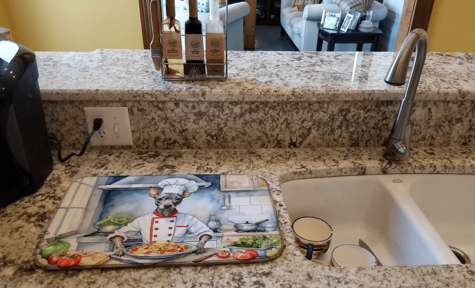 Elevate your kitchen routine with a mat that’s as stylish as it is practical. The Chef Dish Drying Mat features breed-inspired artwork of the American Hairless Terrier, bringing a warm, luxe vibe to everyday tasks. It soaks up water efficiently, cushions delicate glassware, and makes countertop cleanups simpler—perfect for daily use and thoughtful gifting. Your kitchen will feel pampered, organized, and ready for any meal or guests.
