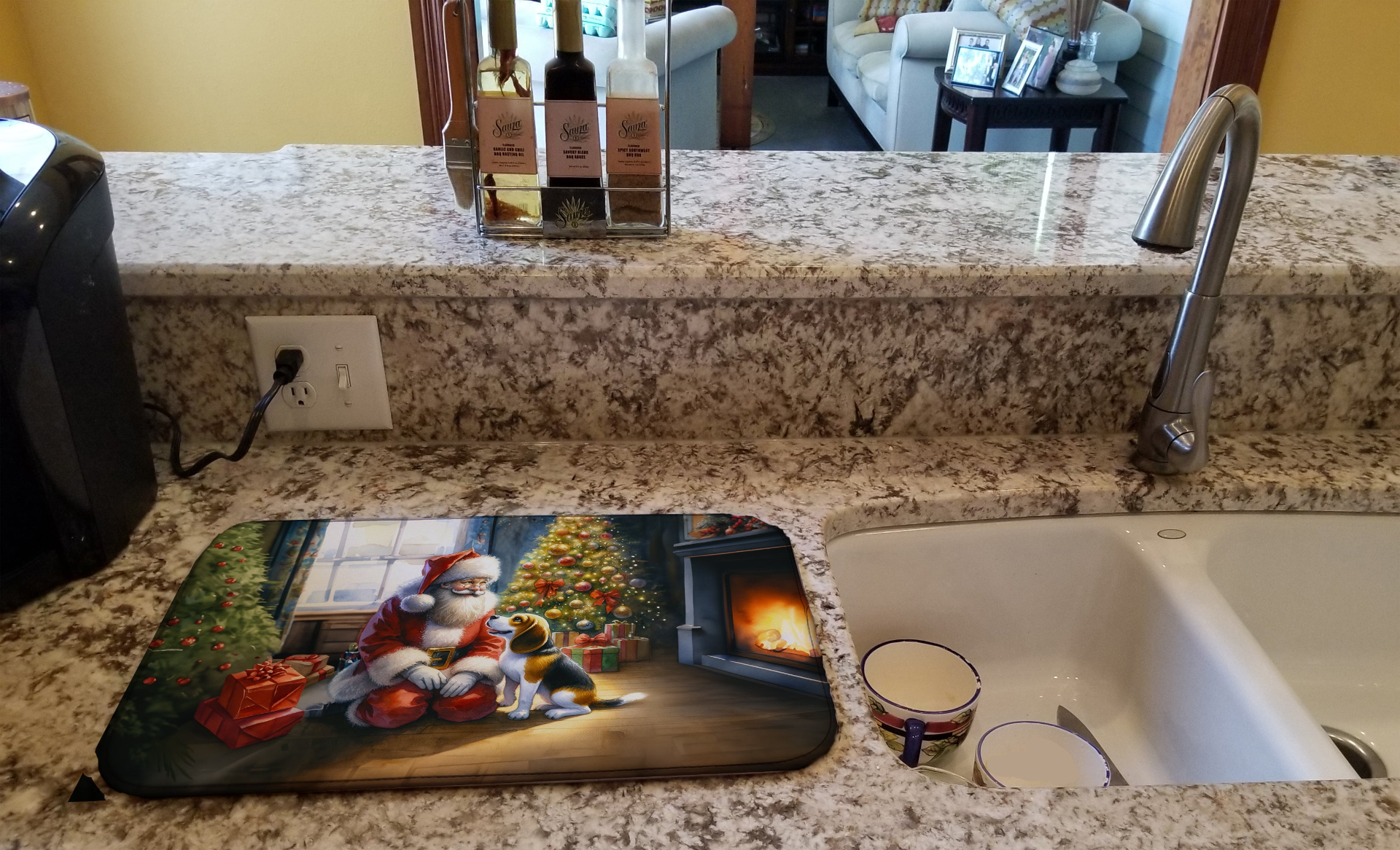 Dish Drying Mat featuring breed specific Beagle artwork. Celebrate Christmas with this Christmas Dish Drying Mat. Say goodbye to messy countertops and soggy dish towels with our innovative dish drying mat. Our high-quality dish drying pad is designed to keep your countertops dry while offering a stylish and efficient solution. Whether you're air drying dishes, glasses, stemware, silverware, pots, pans, bottles, or even fruits and vegetables, our dish mat is the perfect choice. The 14 inches x 22 inches size fits most counters and dish drying racks, and the non-slip design ensures stability. Made with water-absorbent polyester and a polyurethane foam insert, our dish drying mat is not only functional but also durable. It's machine washable and printed in the USA for long-lasting use. The beautiful artwork adds flair to your kitchen decor, making it a perfect housewarming gift or present for any occasion. Upgrade your kitchen experience with our absorbent and versatile dish drying mat.
