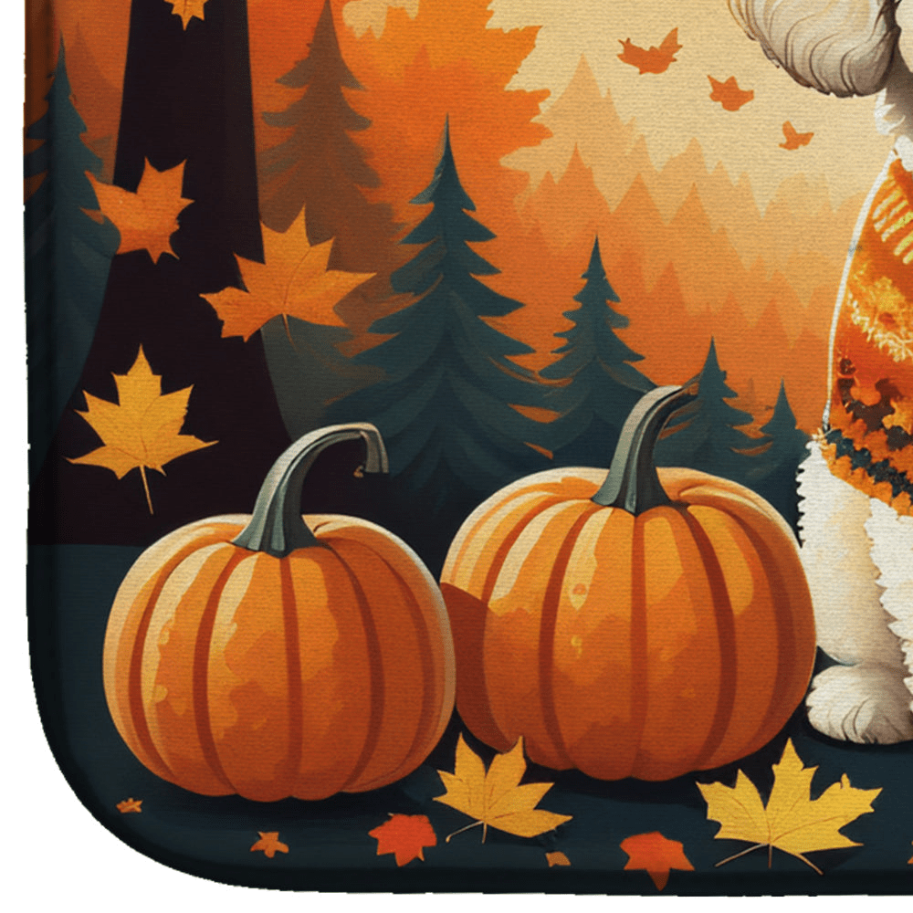 Bichon Frise Fall Dish Drying Mat – Absorbent Kitchen Mat for Dishes, Glassware, and More (14" x 22")