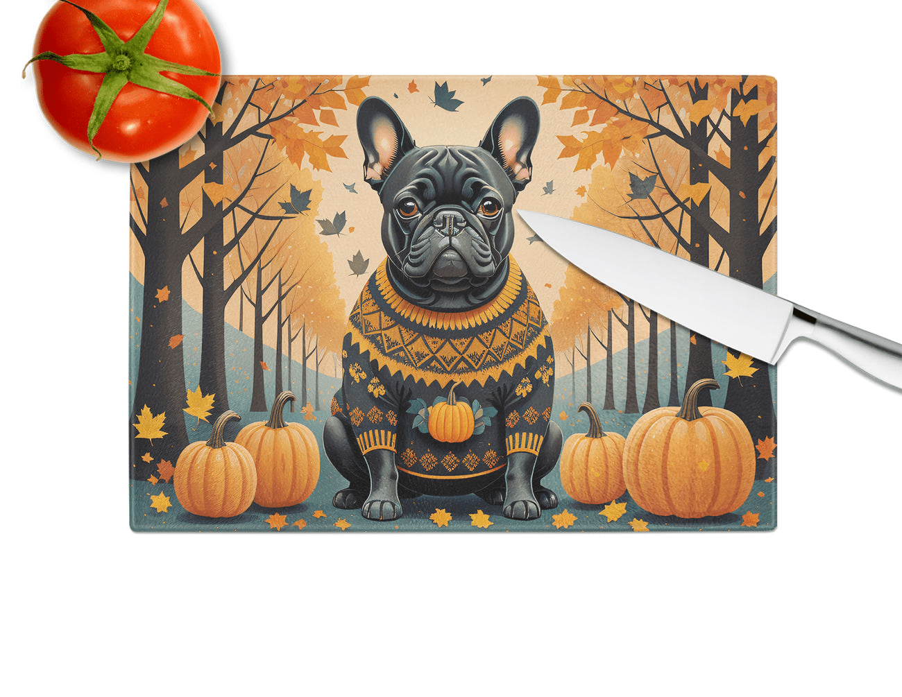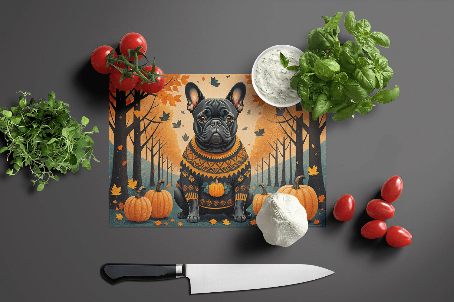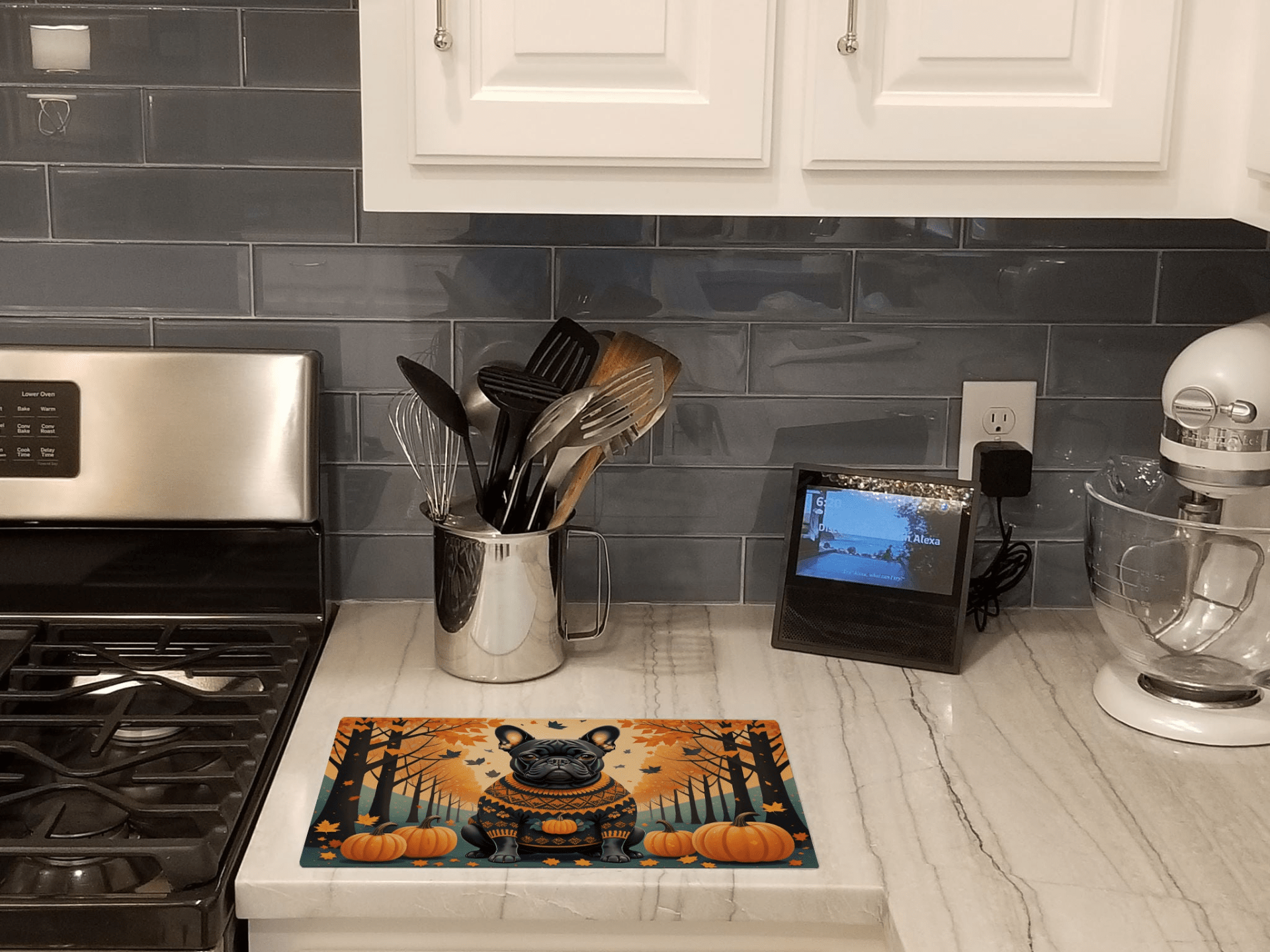 Glass Cutting Board featuring breed specific French Bulldog artwork. Introduce your kitchen to the vibrant, large Decorative Glass Cutting Board from Caroline's Treasures. Crafted from resilient tempered glass, this board is not only a utilitarian necessity but also a colorful art piece. With its generous dimensions of 15 inches in height and 12 inches in length, it offers ample space for all your cutting needs. Every piece showcases captivating artwork from distinguished artists, bringing an aesthetic edge to your kitchen. Beyond its attractive design, this cutting board ensures your countertop stays pristine and unscathed, owing to its heat-resistant properties. Engineered with user convenience in mind, it features non-skid feet for stability, and rounded corners for additional safety. Its robust construction renders it virtually unbreakable, guaranteeing longevity. The board comes with protective feet bumpers, maintaining its position during use. This product is recommended to be hand washed only. Proudly printed and assembled in the United States, this cutting board exemplifies superior craftsmanship. With Caroline's Treasures' Decorative Glass Cutting Board, you're investing in a blend of functionality and artistic flair.